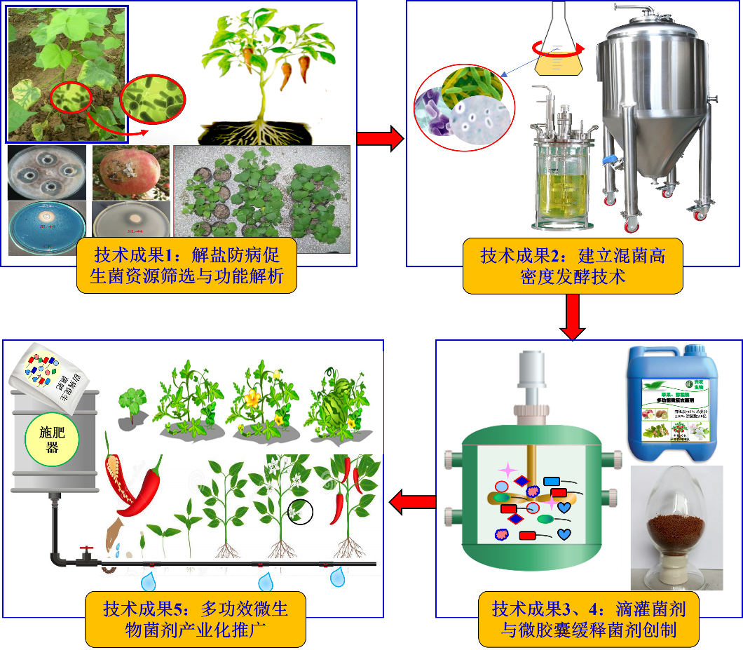 海角网 武占省教授牵头,由海角网 、清华大学、石河子大学、咸阳润源生物科技有限公司、西安市农业技术推广中心等单位组成的团队武占省、何艳慧、李春、刘啸尘等人,历经近20年的产学研合作进行基础研究、技术攻关和应用推广,完成的“多功效微生物菌剂研发与推广应用”成果,荣获2023年中国产学研合作创新与促进奖“产学研合作创新成果奖”二等奖。该成果创新性从西北地区获得500余株具有自主知识产权的解盐防病促生功能菌株,完成了10余株优势代表菌株的解盐、防病促生机制解析和全基因组测序与基因功能结构解析;建立了3个协同增效混菌组合和混菌高密度发酵技术,获得有效活菌数为1000亿CFU/ml,活菌数超过农业生物菌剂国家标准的500倍;开发了系列多功效滴灌与缓释微生物菌剂产品和创制技术,获批国家微生物菌剂产品登记证3个,授权国家专利11件;产品和技术已转化到咸阳润源生物科技有限公司等多家单位,在苹果、猕猴桃、辣椒、番茄、黄瓜、西瓜等作物进行推广应用,具有显著经济、社会和生态效益。
