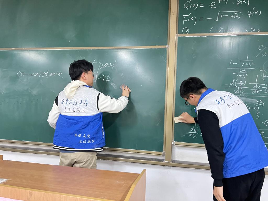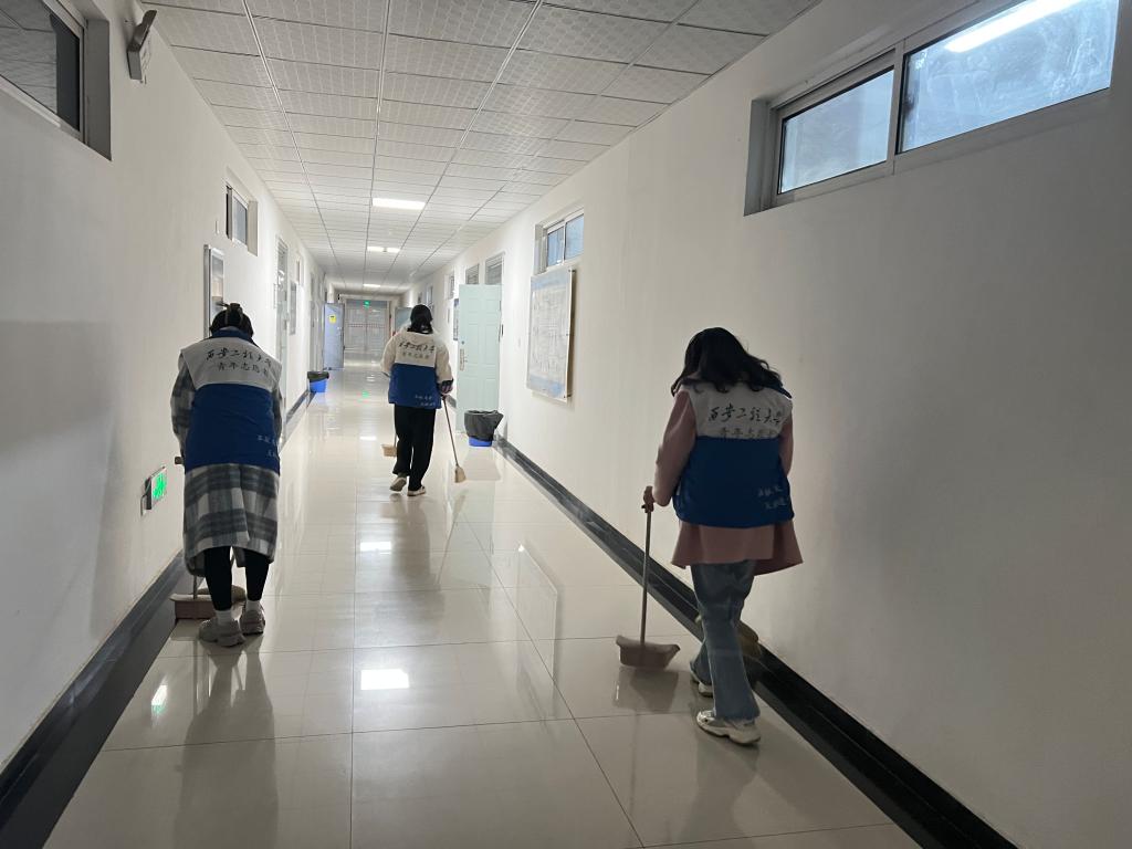 学院团总支书记贾天昱对此次活动的开展进行了详细安排与分工,志愿者们在教室、实验室等区域做了垃圾清理、消除粉尘等工作,志愿者们分工明确,不怕脏不怕累,积极主动地投身于校园清洁的活动中。