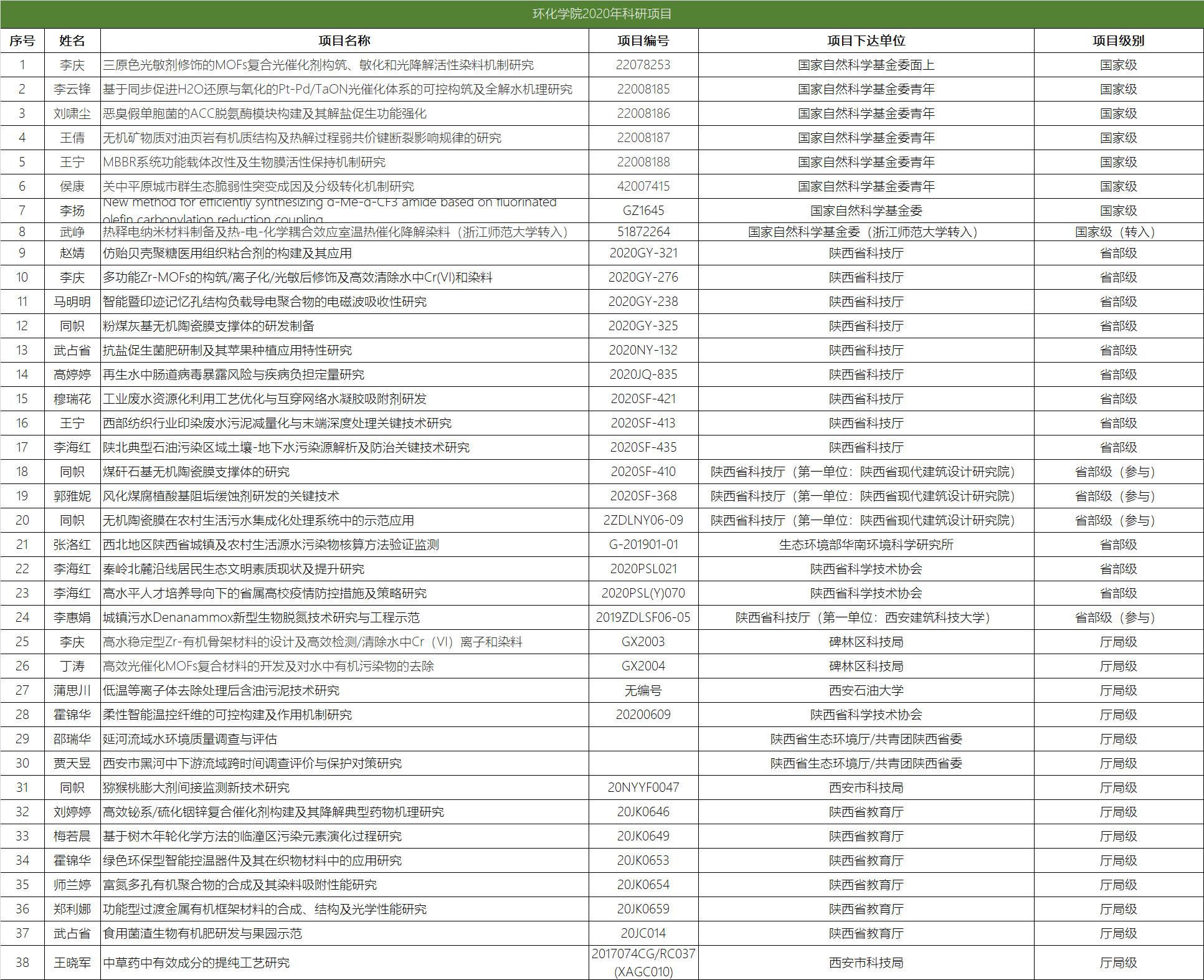 环化学院2020年科研项目