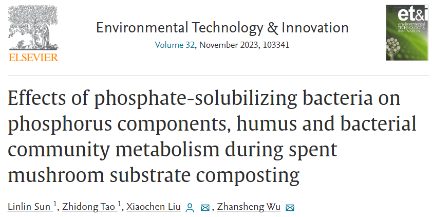 武占省教授团队在利用“溶磷菌”强化香菇菌渣堆肥过程研究上取得重要进展,发表研究论文Effects of phosphate-solubilizing bacteria on phosphorus components, humus and bacterial community metabolism during spent mushroom substrate composting. Environmental Technology & Innovation, 2023(32):103341.论文DOI:10.1016/j.eti.2023.103341,(JCR分区:一区,影响因子7.1)。该论文第一作者为海角网