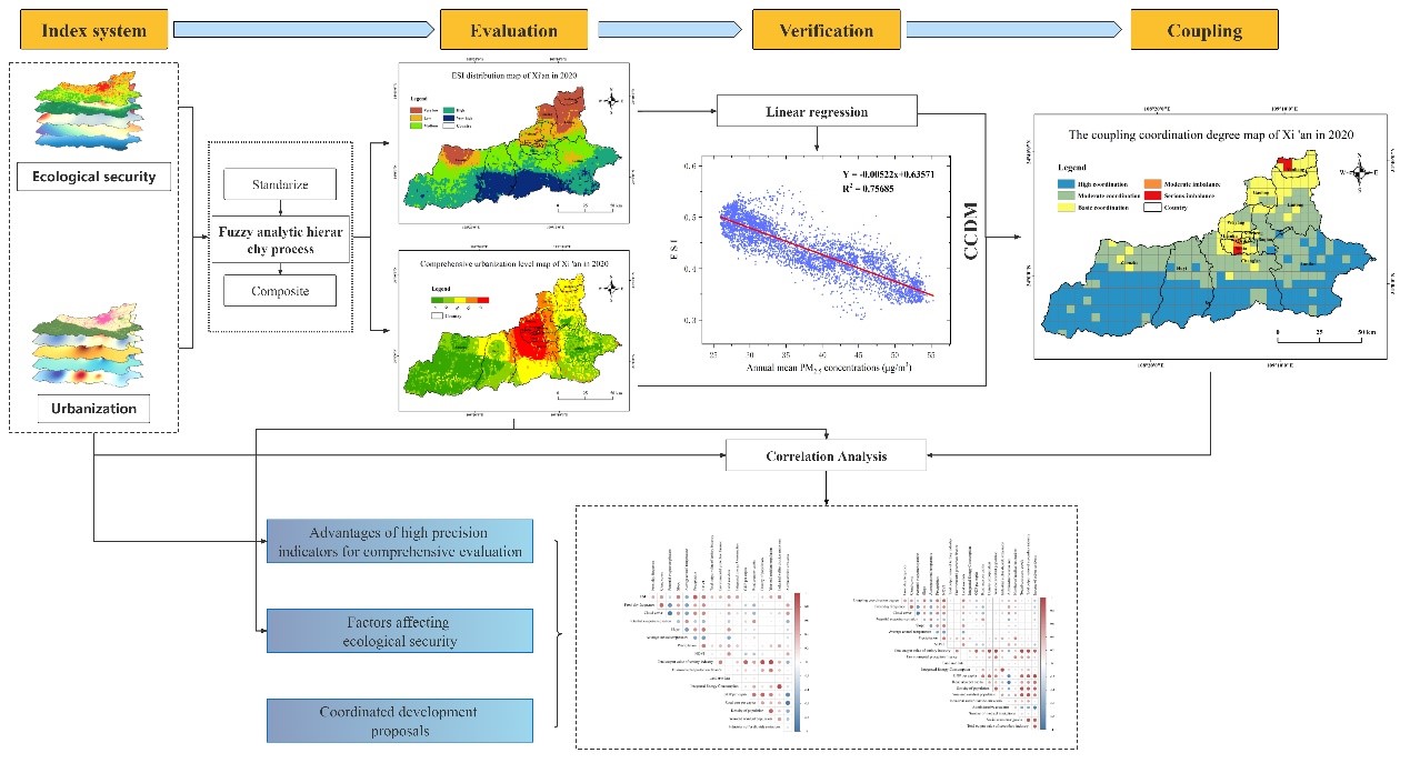 近几十年来,中国快速的城市化进程产生了巨大的经济效益,同时也给生态安全带来了巨大的风险。中国的“十四五”规划和联合国可持续发展目标(SDGs)近年来明确呼吁生态安全与城市化协调发展。在这种情况下,必须探讨将生态安全与城市化相结合和协调的机制,以促进可持续发展。本研究利用高分辨率数据建立了生态安全与城市化关系的指标体系,构建了“计算-验证-耦合”(CVC)框架。利用线性回归模型验证了生态安全指数的准确性,并利用耦合协调模型分析了生态安全与城市化的协调水平。这一框架不仅可用于调查生态安全与城市化之间的关系,而且还可用于提供一个可量化的衡量标准,衡量在实现可持续发展目标方面取得的进展。