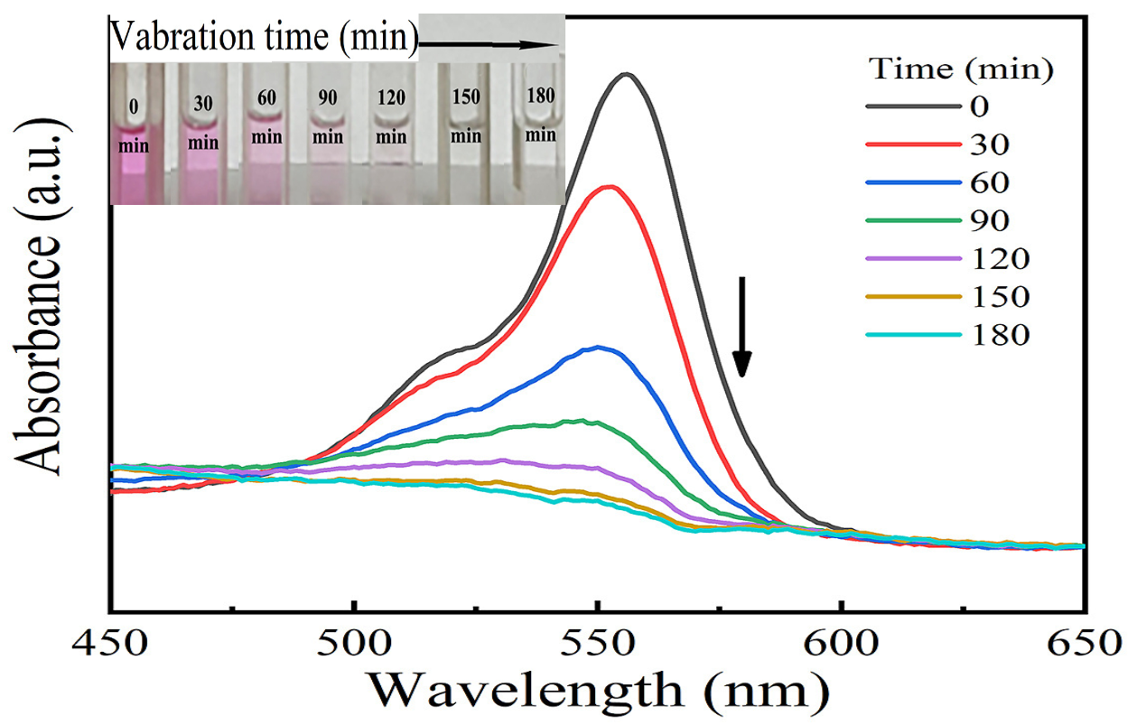 环化学院为第一单位,武峥博士为通讯作者。本工作中,通过溶胶凝胶法合成了PZT膜,在3小时振动激励下,对罗丹明B染料溶液的降解率达90.22%左右。振动能量、溶液pH值、染料浓度等条件参数的影响也被详细表征并优化。该膜材压催化剂具有制备简单及回收方便等优点,在纺织印染废水中处理中有潜在实际应用前景。