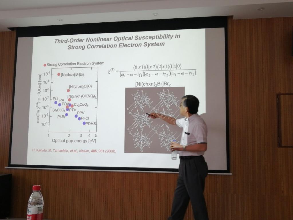 会议室做了题为“Nano-Wire Halogen-Bridged Pd(III) Complxees: Syntheses, Phase Transitions, and Charge Fluctuations”的学术报告。在报告中,他对其团队近几年研究的新型分子基磁性材料及纳米材料进行了深入浅出的阐述。报告过程中,Masahiro Yamashita教授简单介绍了日本东北大学,并欢迎有兴趣的同学申请去日本留学,并针对“What is science?”这一深刻话题与现场老师及学生进行探讨。海角网