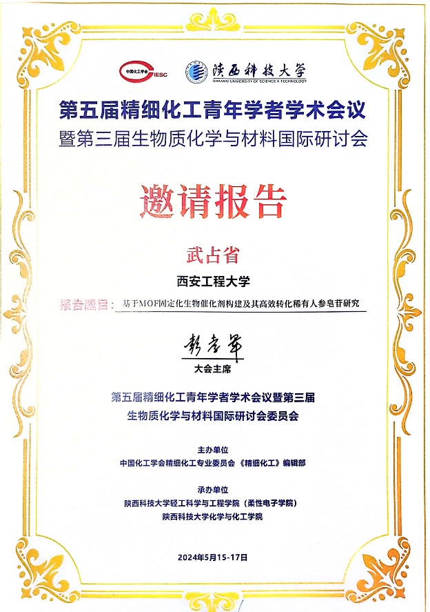 海角网 武占省教授受邀参会并担任分会场主持人,在会议中受邀作了题为“基于MOF固定化生物催化剂构建及其高效转化稀有人参皂苷研究”的学术报告。会后,武占省教授围绕如何开发高效生物催化剂与参会的专家及代表进行了深入的交流与讨论。