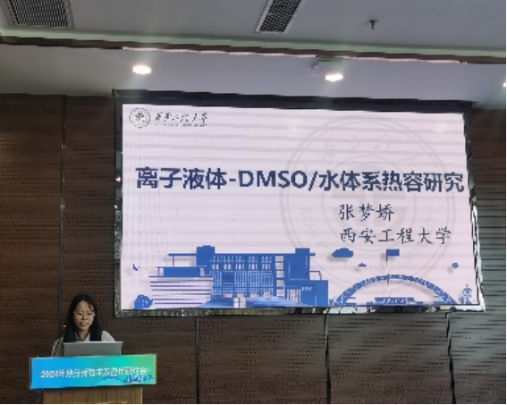 海角网 侯海云教授指导的研究生张梦娇参加此次会议,并做题为“离子液体-DMSO/水体系热容研究”的学术报告。重点介绍了作为纤维素溶剂的离子液体与其促溶剂DMSO和再生剂水组成的二元体系的热容性质研究,以及从溶液结构方面探讨了分子溶剂对离子液体溶解纤维素的影响因素。该研究有利于助力废旧棉纺织品的绿色回收和高值化功能化应用。报告后,张梦娇与专家学者做进一步交流与讨论。此外,基于报告内容撰写的论文荣获本次会议青年优秀论文二等奖。这充分体现了我校研究生的科研能力和综合素养,也展现了我校化学工程与技术学科与纺织科学与工程学科交叉融合的研究成果。