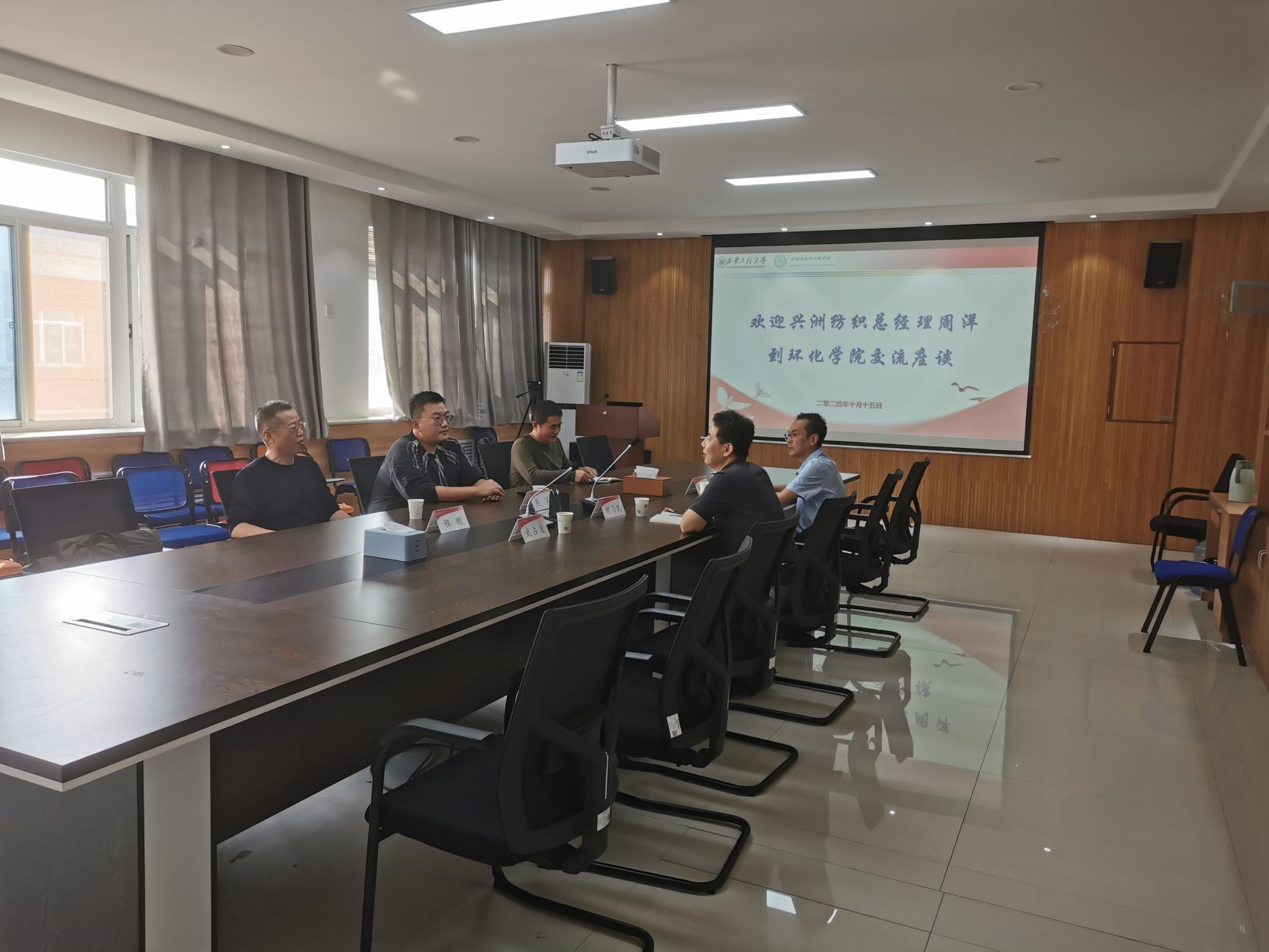 2024年10月15日,兴洲纺织科技有限公司总经理周洋携公司技术主管来访,与程刚教授及环境技术研究&应用团队就兴州纺织清洁生产审核相关问题进行了沟通交流,双方就推动加深双方产学研合作达成了共识。环化学院党委书记胡西民、副书记林定武、环工系副主任王理明、程刚、于翔、刘钊老师参加座谈会。