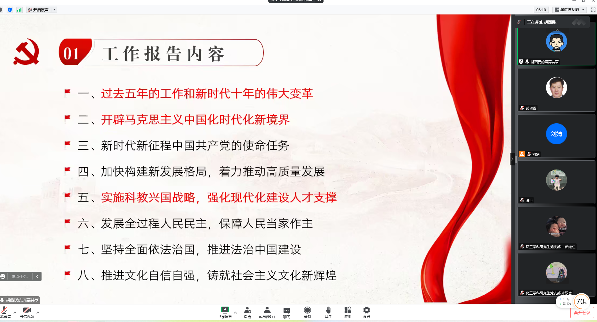 党委于11月15日上午10点举行学习贯彻党的二十大精神报告会。全院三百余名党员、预备党员、入党积极分子线上收看了报告会直播。