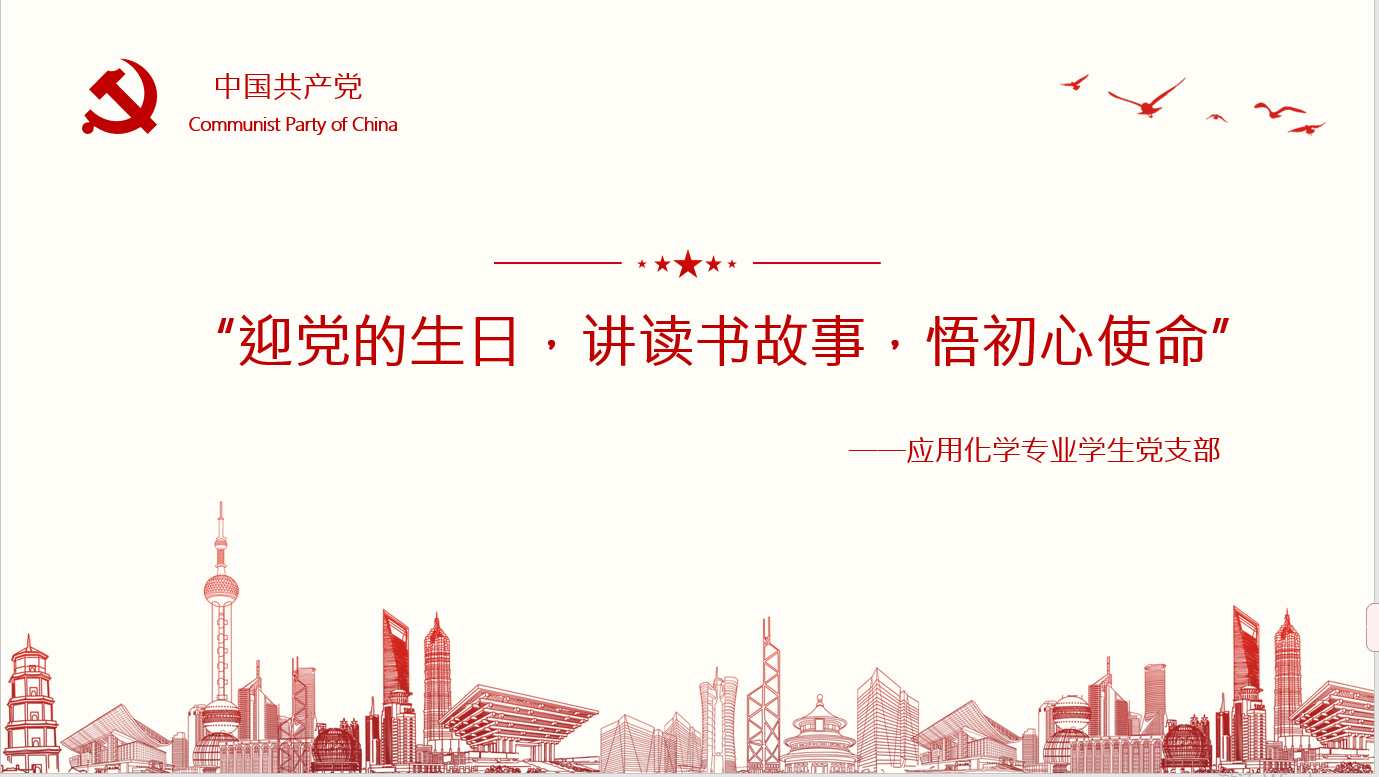 应用化学专业学生党支部召开主题为“迎党的生日,讲读书故事,悟初心使命”主题党日活动。活动由党支部书记刘婧主持,支部29名党员共同参与。