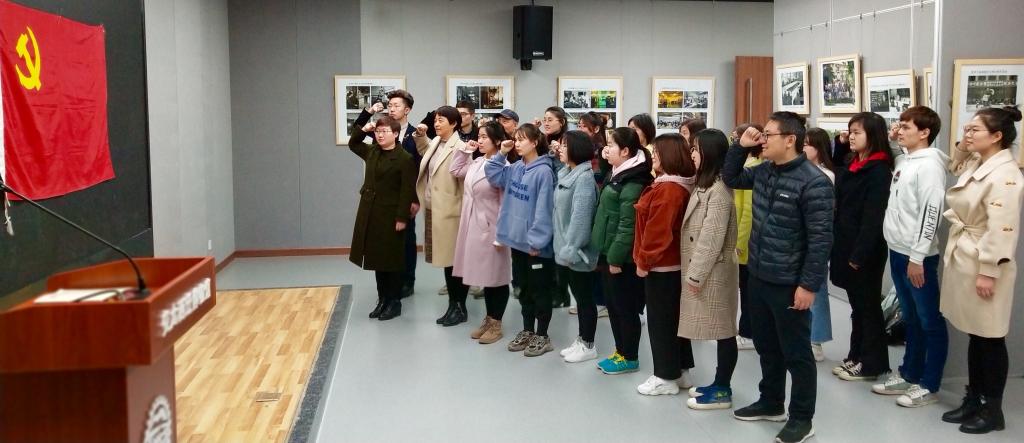 最后,站在无比庄严神圣的党旗前,随着阵阵“我志愿加入中国共产党……”,师生党员们重温入党誓词,心潮澎湃,表达着奉献报国的坚定决心。