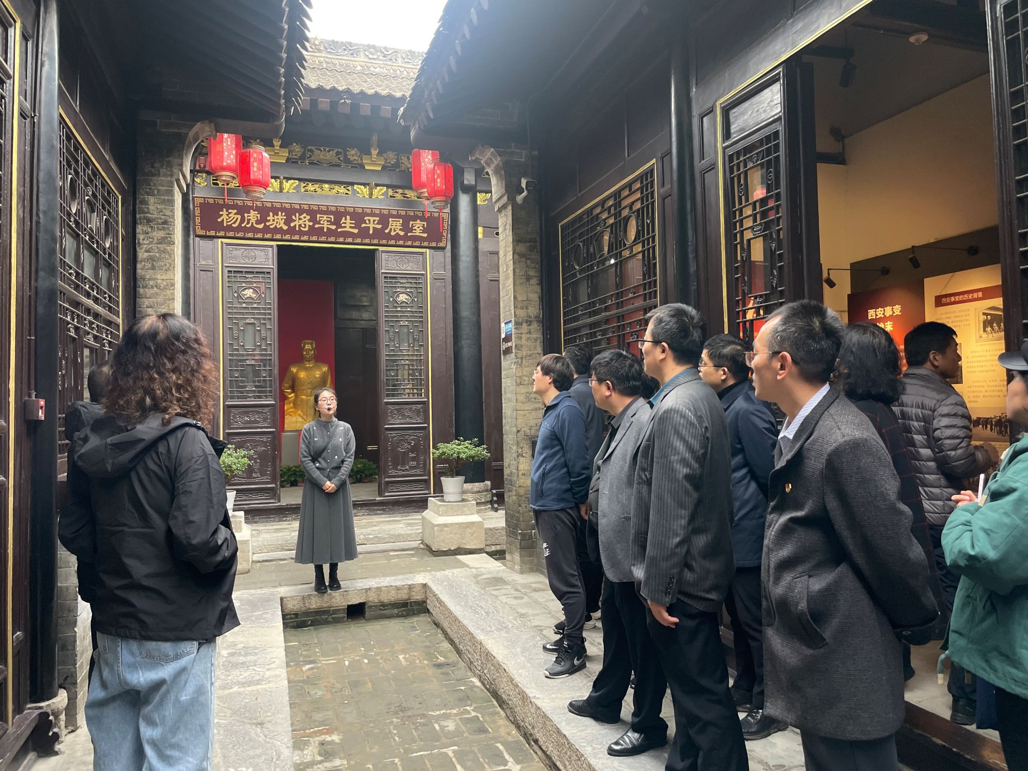 在杨虎城故居,大家首先听取了讲解员对杨虎城将军生平事迹的详细介绍。杨虎城将军作为著名的爱国将领,其一生充满了对国家和民族的忠诚与奉献,通过参观将军的居室、办公室以及各类历史文物,大家深刻感受到了将军的崇高精神和爱国情怀。