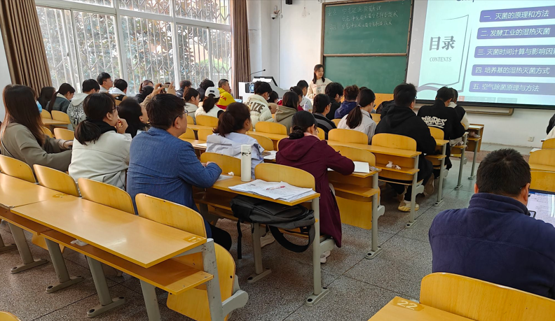 为深入贯彻落实全会精神,进一步深化课堂教学改革,增强教学效果,有效促进教师之间相互交流学习,上午十点各位党员到D1104教室进行曹翠老师《发酵工程》课程的教学观摩实践。