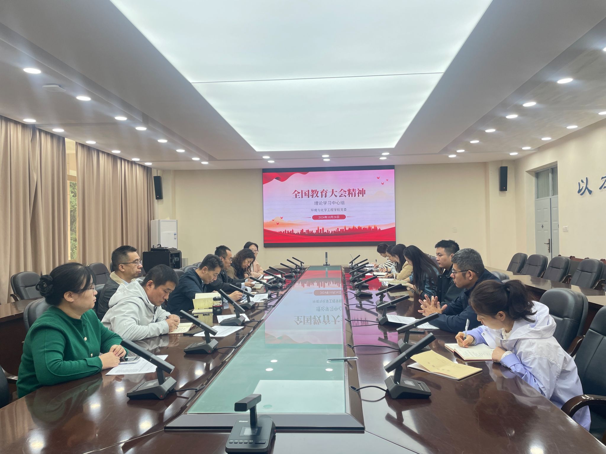 2024年10月28日,环化学院党委于A栋教学楼104会议室召开党委理论学习中心组(扩大)会议,专题学习习近平总书记在2024年全国教育大会上的重要讲话精神。学院党委书记胡西民主持会议,全体中心组成员及部分教师代表参加了此次学习会议。