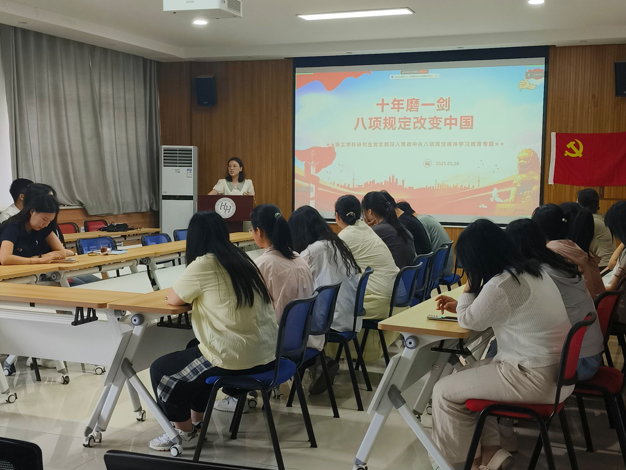2025年5月28日,环工学科研究生党支部在507会议室开展“深入贯彻中央八项规定精神学习教育”。党支部书记刘婷婷主持会议,环工学科研究生党支部全体党员参加。