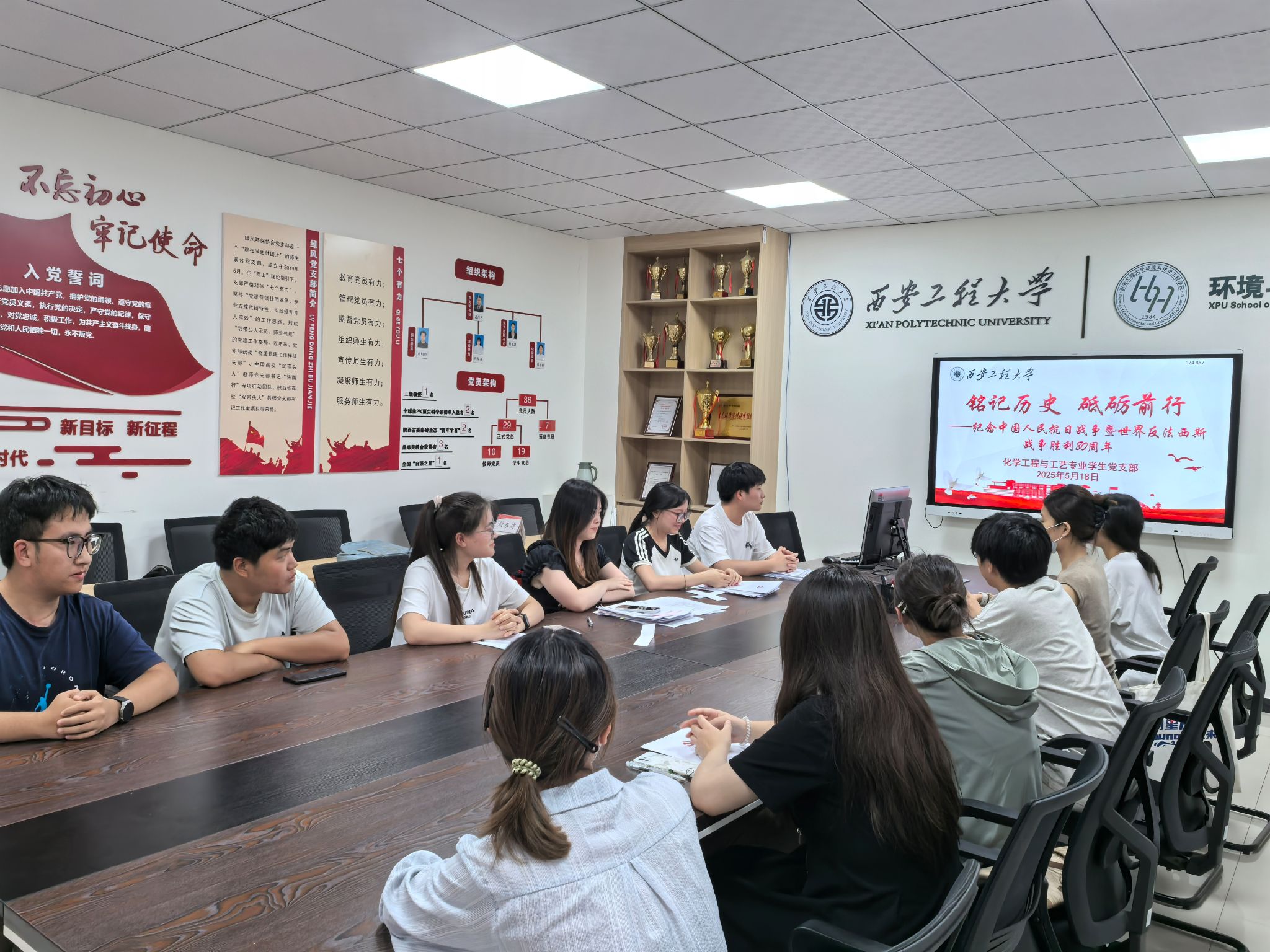 化学工程与工艺专业学生党支部开展“铭记历史,砥砺前行”主题党日活动。活动由党支部书记盖潇宇主持,支部全体党员参加。
