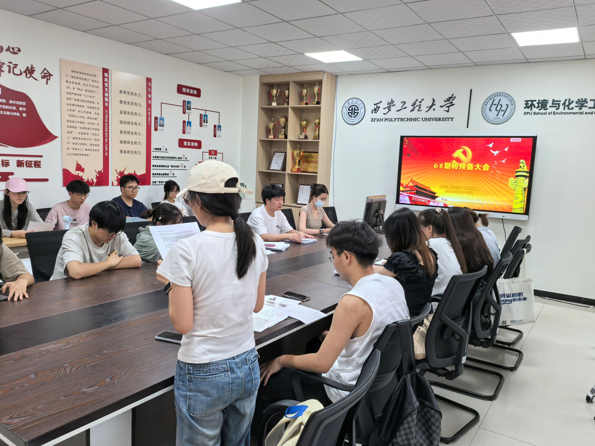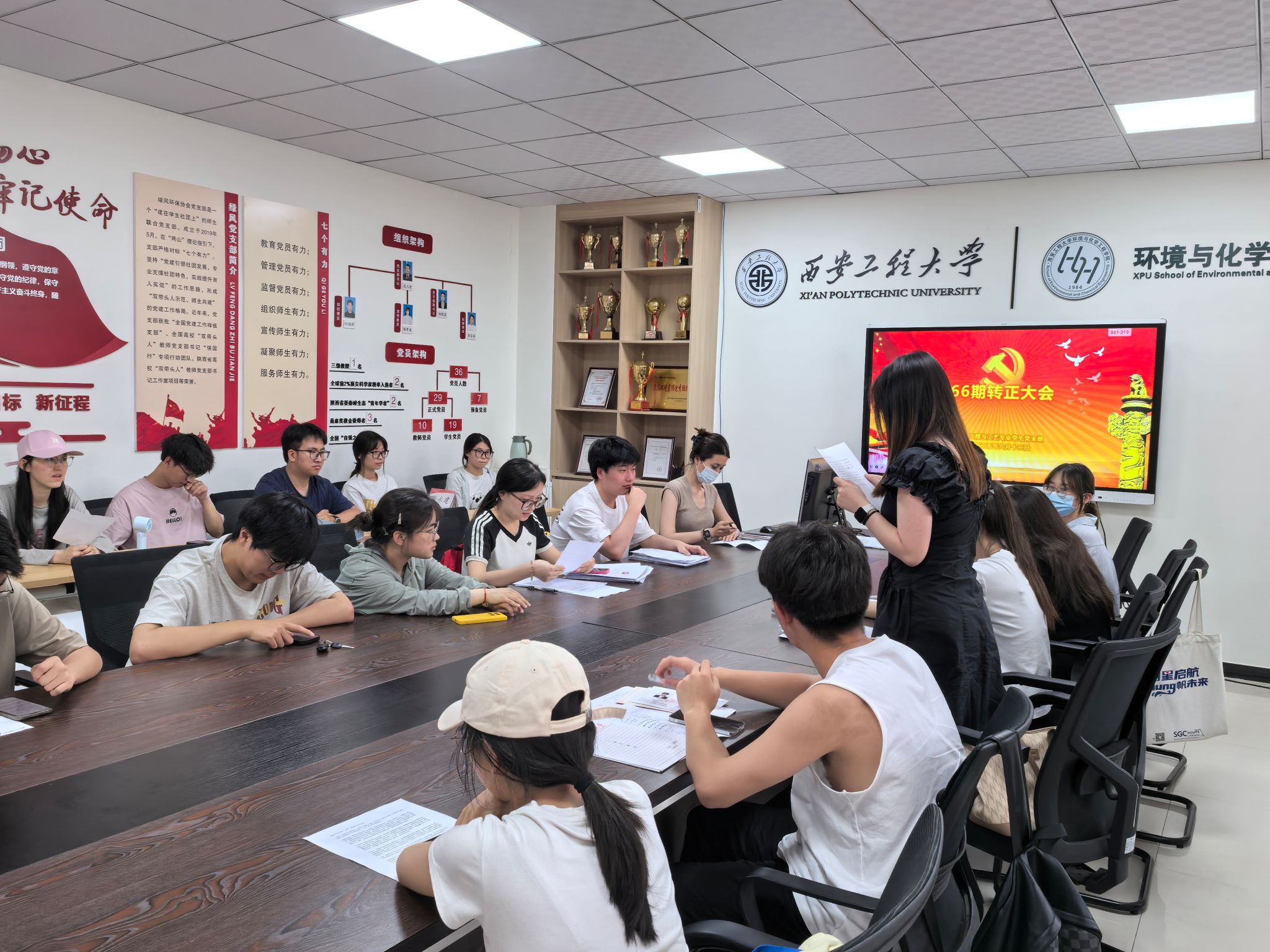 化学工程与工艺专业学生党支部在环化楼236会议室召开接收预备党员及预备党员转正大会。会议由党支部书记盖潇宇主持,支部全体党员参加。