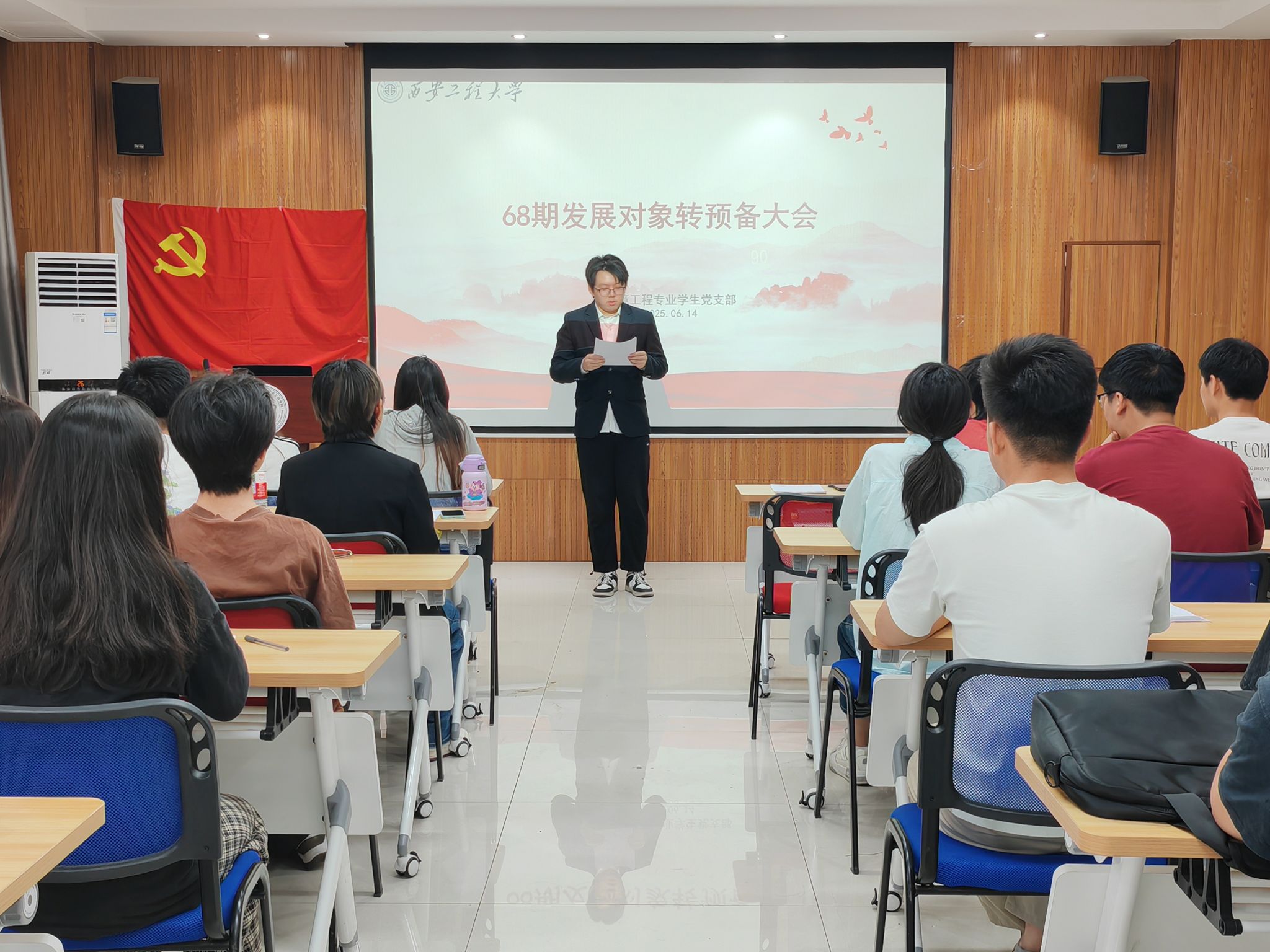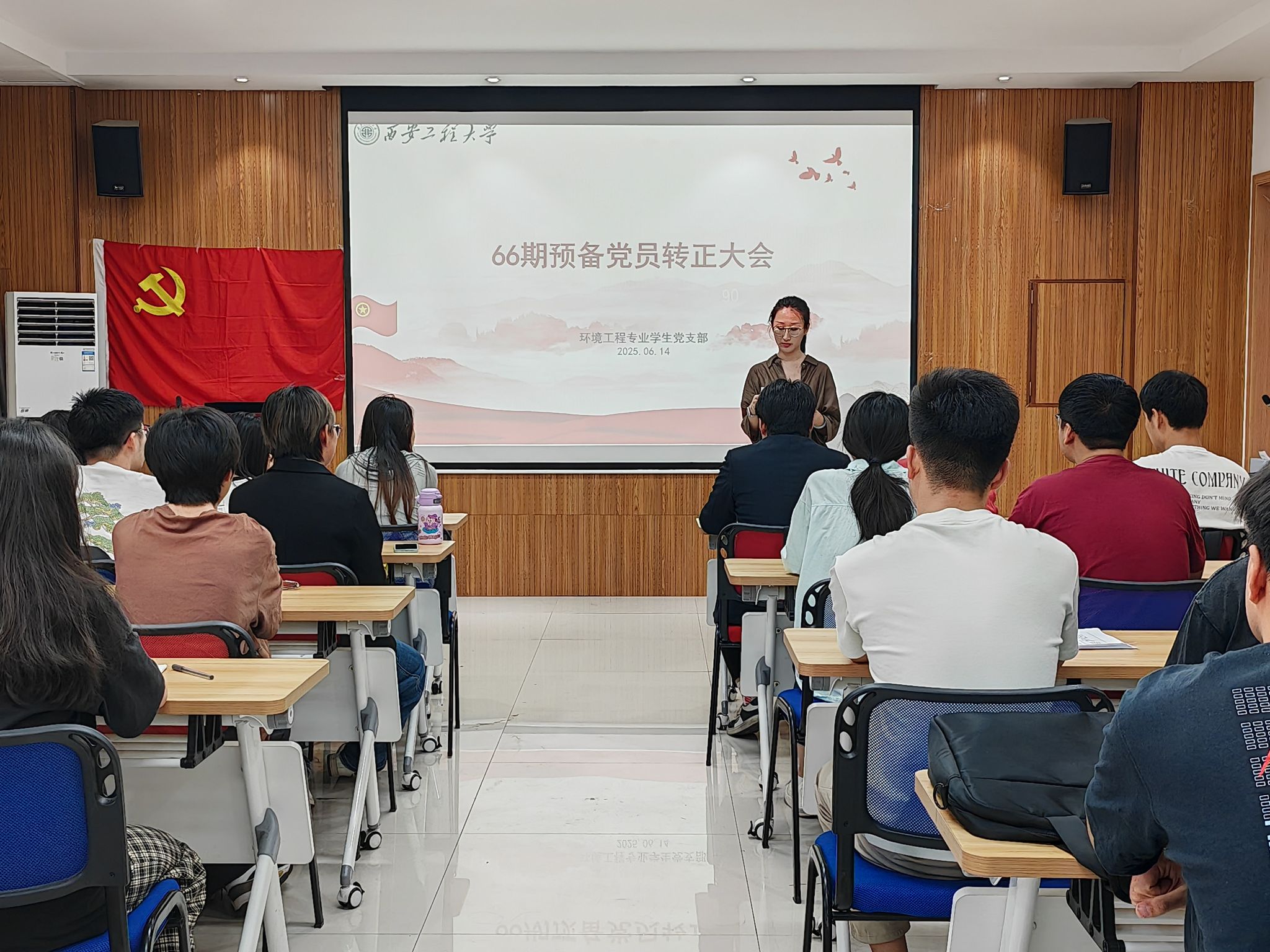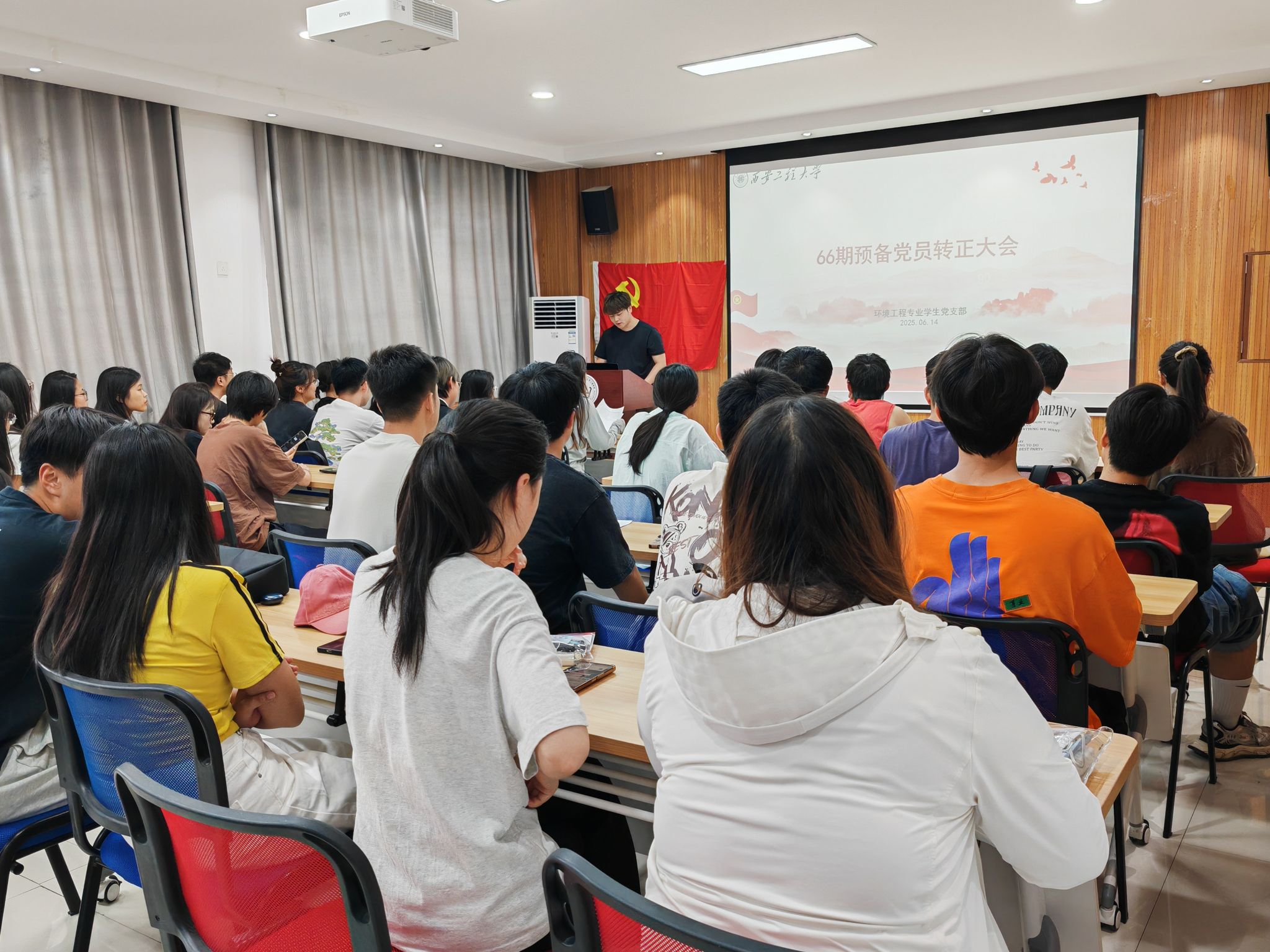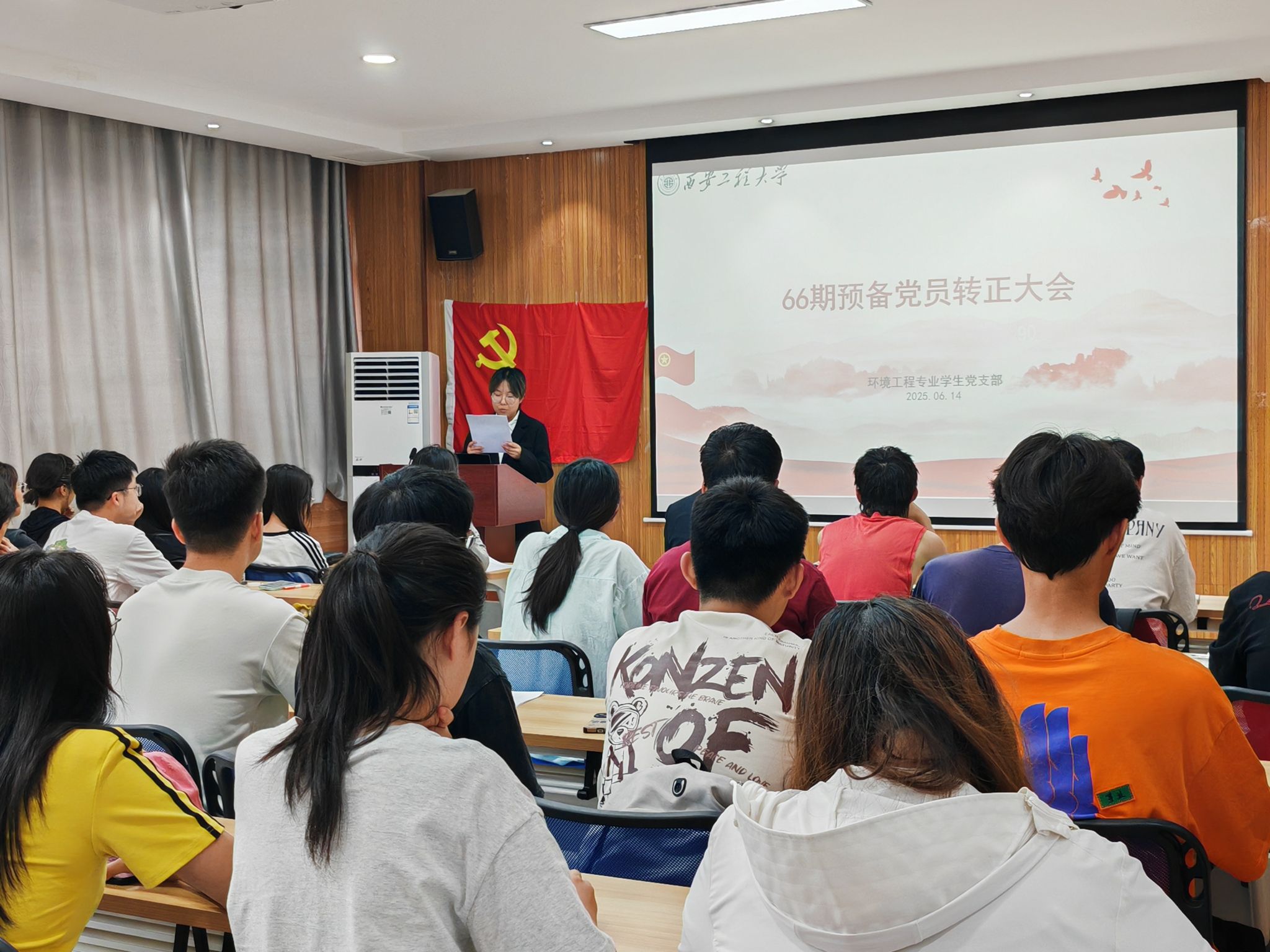 2025年6月14日,环化学院环工专业学生党支部在环化楼507会议室召开预备党员接收及转正大会,讨论发展12名新党员及10名预备党员转正事宜。会议由党支部书记任子瑜主持,支部全体党员参加。