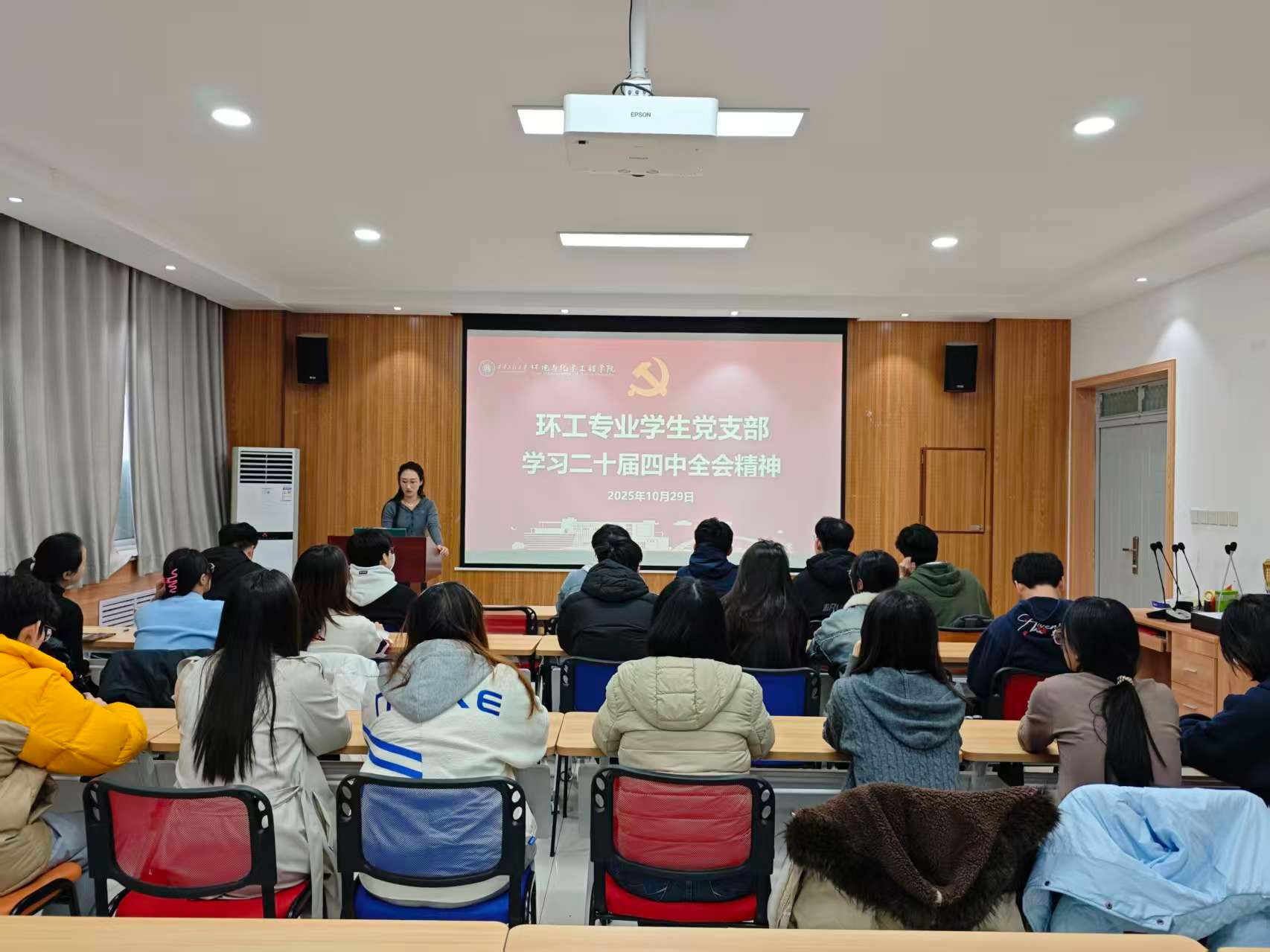 为深入学习贯彻党的二十届四中全会精神,10月29日,环境工程专业学生党支部在学院507会议室召开专题学习会。支部全体党员参加会议,会议由支部书记任子瑜主持。