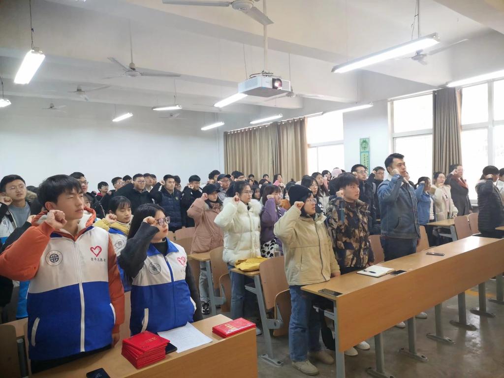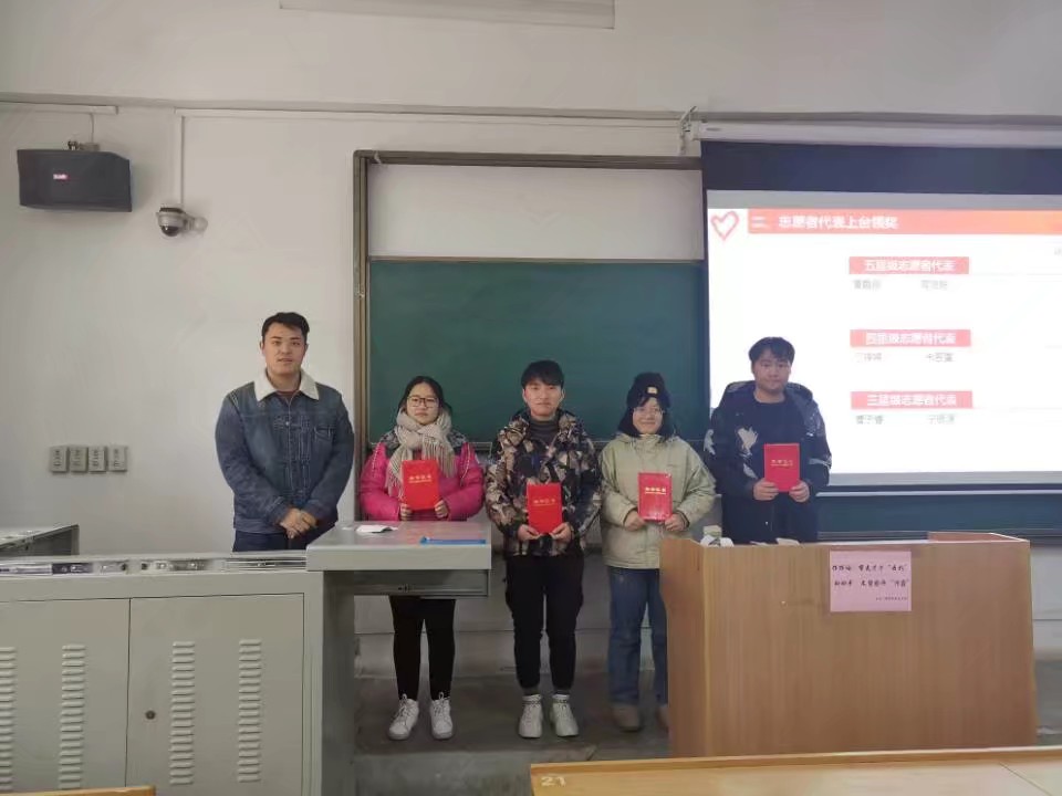 为了弘扬奉献、友爱、互助、进步的志愿服务精神,树立青年志愿服务典型,展示志愿服务成果,营造良好的校园志愿服务氛围。2019年12月31日中午环化学院青分队于教学楼A-132召开志愿者入退队仪式暨表彰大会。团总支书记贾天昱及学院青分队全体志愿者参加本次活动。