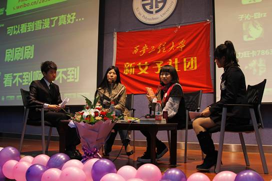 环化学院新女子社团的邀请,著名著名作家饶雪漫和西岭雪在我校临潼校区图书馆二楼报告厅和广大学生见面共话青春。