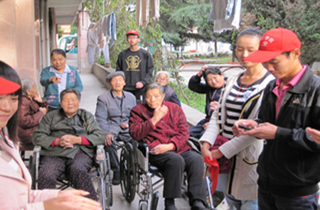 10月15日下午,环化学院青分队走进芙蓉区养老院为老人们献爱心。