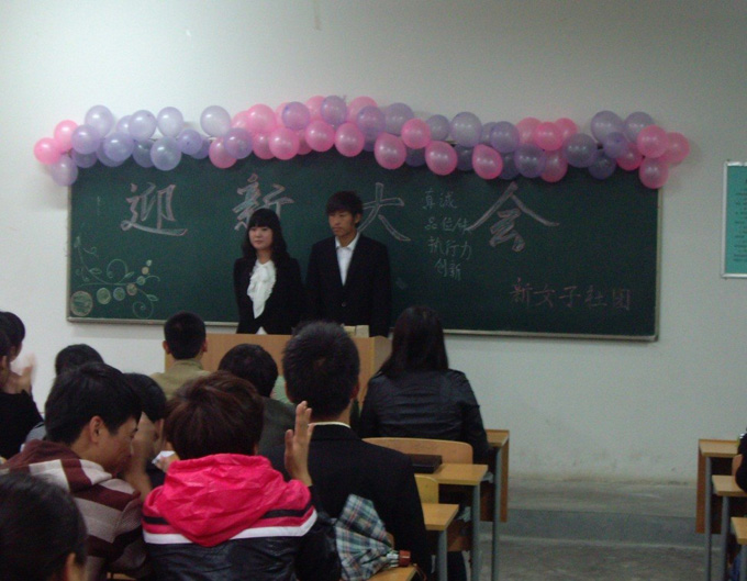 2011年9月28日下午四点新女子社团迎接新成员大会拉开序幕。大会历时一个半小时,11级干事朝气蓬勃,激情澎湃。其间,新女子社团指导老师林定武发表热情洋溢讲话,他指出,学生不管是参加社团还是学习要有明确的目标,这样才能使大学生活充实圆满,林老师为整个社团和2011级新干事指明了大学学习和生活的目标。新女子社团会长李佳囡和上届会长邱君向新干事分享了社团活动的点点滴滴,同学们倍受鼓舞。新生代表乔胜发言,慷慨激昂,让我们看到了充满激情和自信的11级新干事。同时,各部代表对本部门工作情况进行了详细的介绍。最后,在同学们的热烈掌声中本期迎大会圆满新束。