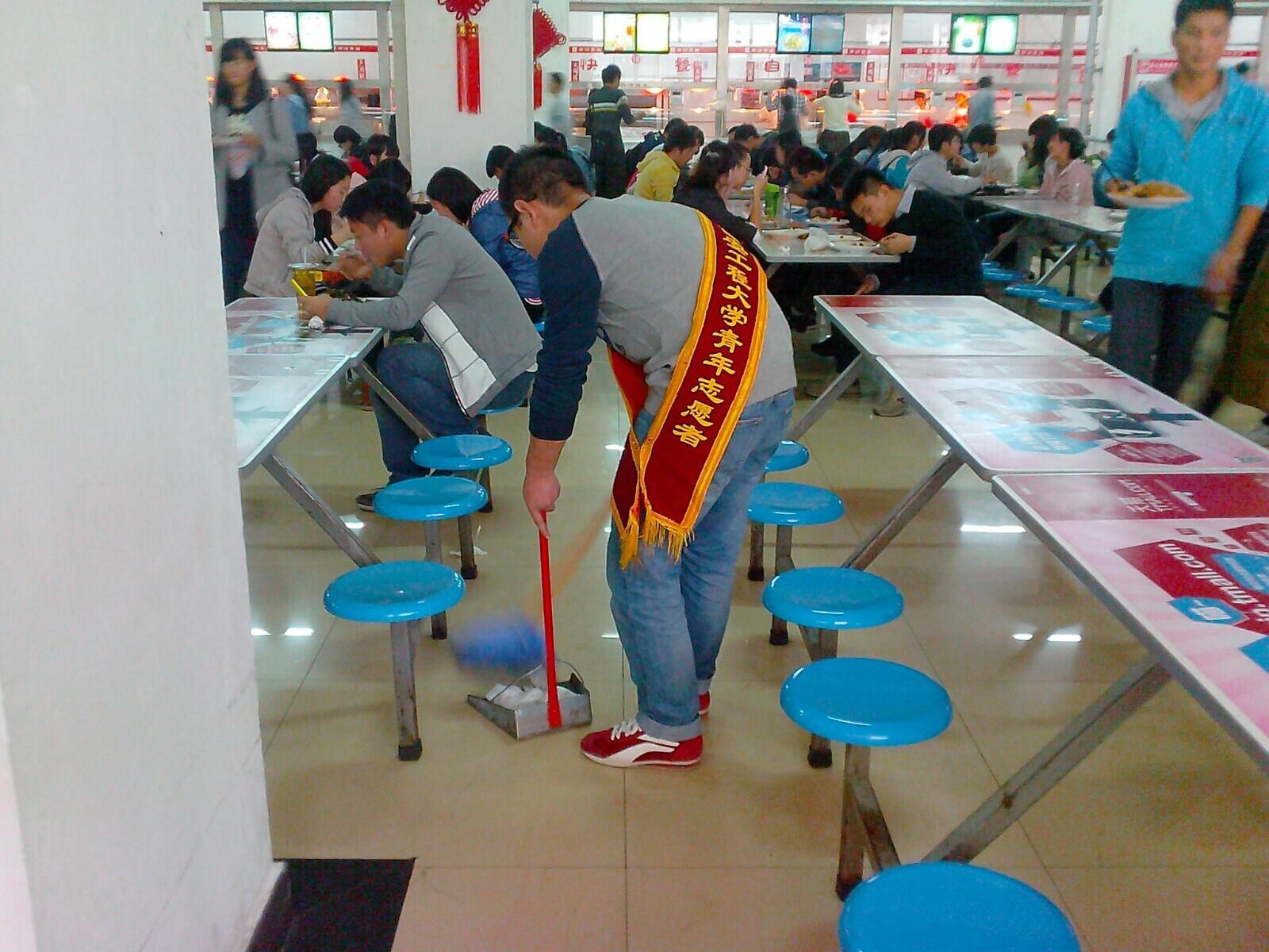 近期,学院团总支组织志愿者在学校食堂用餐高峰期协助维护用餐秩序,宣传“光盘行动”,提醒广大师生有序排队,按量购买,杜绝浪费,文明就餐。志愿者们还积极清理餐桌,保持食堂卫生,他们不怕脏不怕累的工作给广大师生提供了干净卫生的就餐环境。