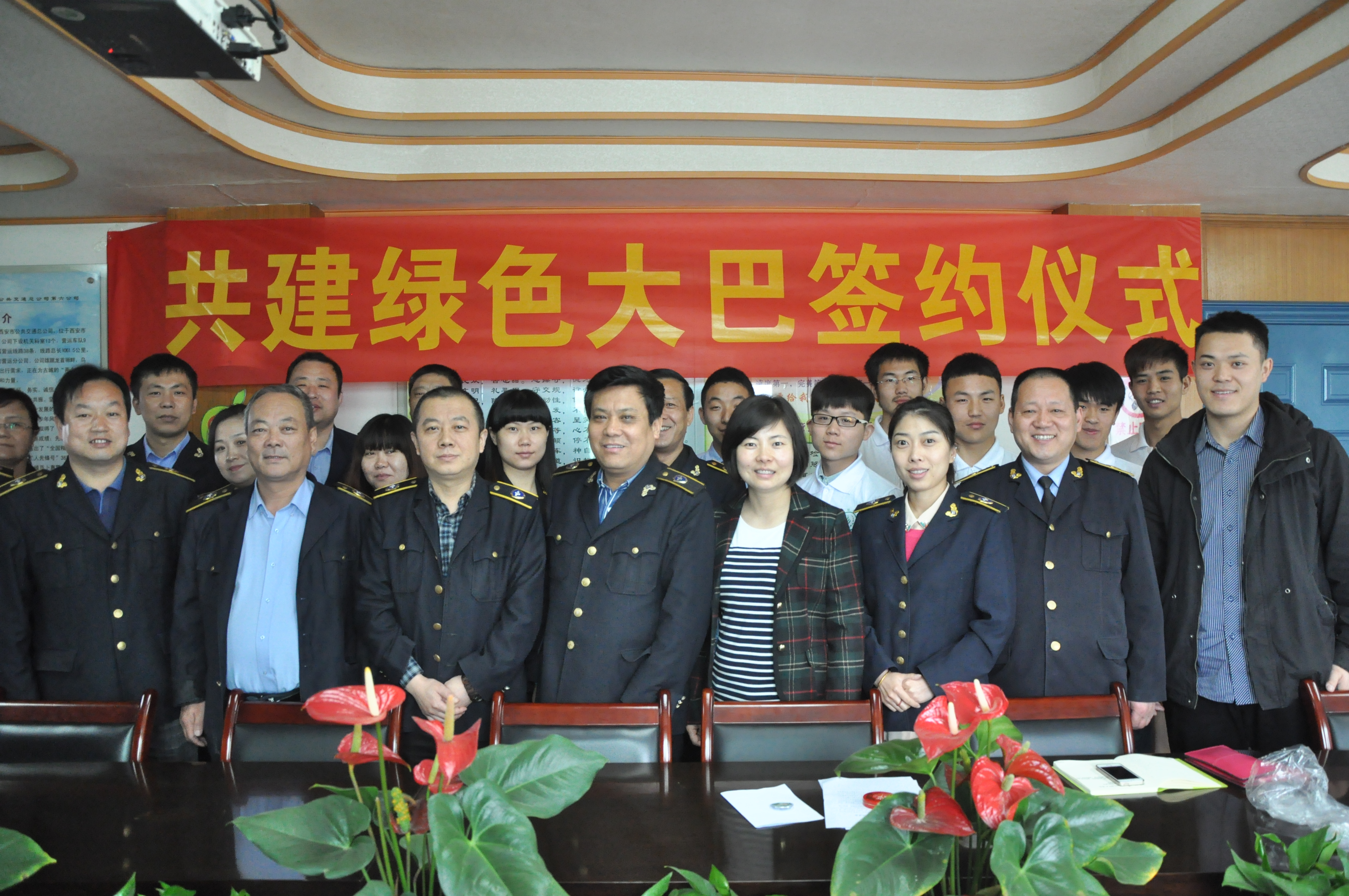 团总支与西安市公交六公司七车队在公交六公司三楼会议室举行“共建绿色大巴”签约仪式。本次签约后,绿风环保志愿者将在306、307路公交车上开展环保、文明乘车等志愿活动。