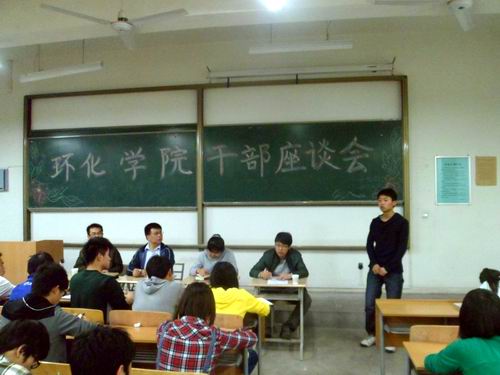 学生干部座谈会在临潼校区教学楼A-202教室召开,学院党总支书记李建学、党总支副书记袁群、学工办副主任林定武及2012级辅导员马轲出席了本次会议,团总支、学生会、科技协会及“绿风”环保协会等学生组织常委、各部门部长和2011级2012级各班班长、团支书参加了座谈会。会议肯定了学院近期的学生工作,并对未来的学生工作提出了要求。