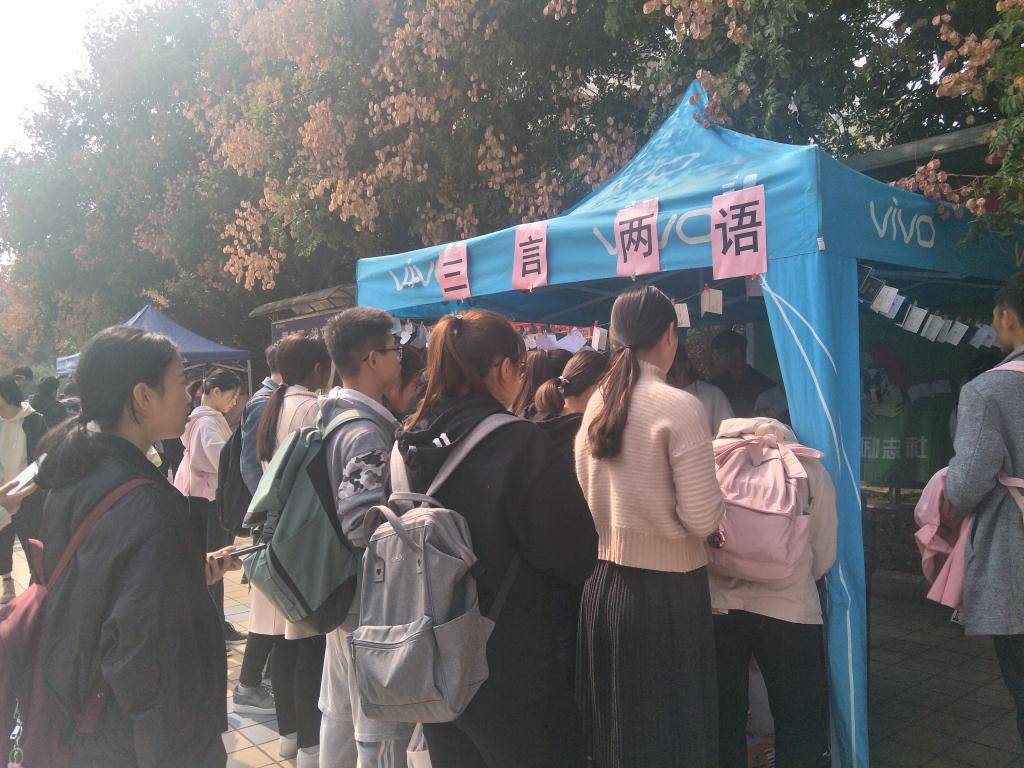 弘毅励志社举办为期两天的“三言两语——写给母校的情诗”活动在临潼校区中心广场举行。我校八百余名学生参加了此次活动,共收集优秀作品四百余件。