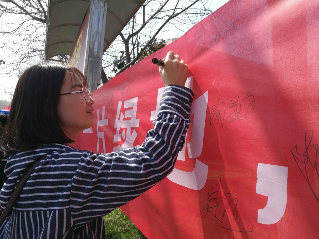 为响应世界水日的号召,传播节约水资源理念,2018年3月22日午时,“绿风”环保协会于校中心广场举行节水倡议活动,在倡议活动中,同学们纷纷在横幅上签名留言,希望大家能够响应“绿风环协”号召,从自己做起,从小事做起,并带动身边的朋友,和“绿风”环保协会一起,保护、节约水资源!我们以此为契机我们把三月定位节水活动月,以引导广大学生做水环保的践行者,让青年学生树立水环保意识。