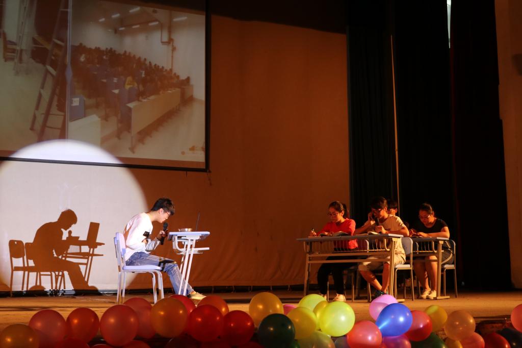 19点整,四位主持人宣布心理情景剧大赛正式开始,首先,由袁群老师为大赛致辞并介绍出席大赛的各位嘉宾老师。紧接着,各专业按照表演顺序为观众带来了7场精彩的心理情景剧表演,它们分别为《墨镜,墨镜,告诉我》、《最初的梦想》《时分》、《蜕变》、《上帝视角万花筒》、《抬头》、《谁的青春不迷茫》。情景剧内容贴近大学生活,反映了大学生之间普遍存在的学业问题、个人情感、沉迷网络、人际交往等突出问题。经过评委的综合评分,环境科学专业的心理情景剧《墨镜,墨镜,告诉我》脱颖而出,荣获一等奖。最后,嘉宾老师们为团体奖和个人奖获得者颁发证书,并由王春元老师对大赛做出总结讲话,宣布大赛圆满结束。