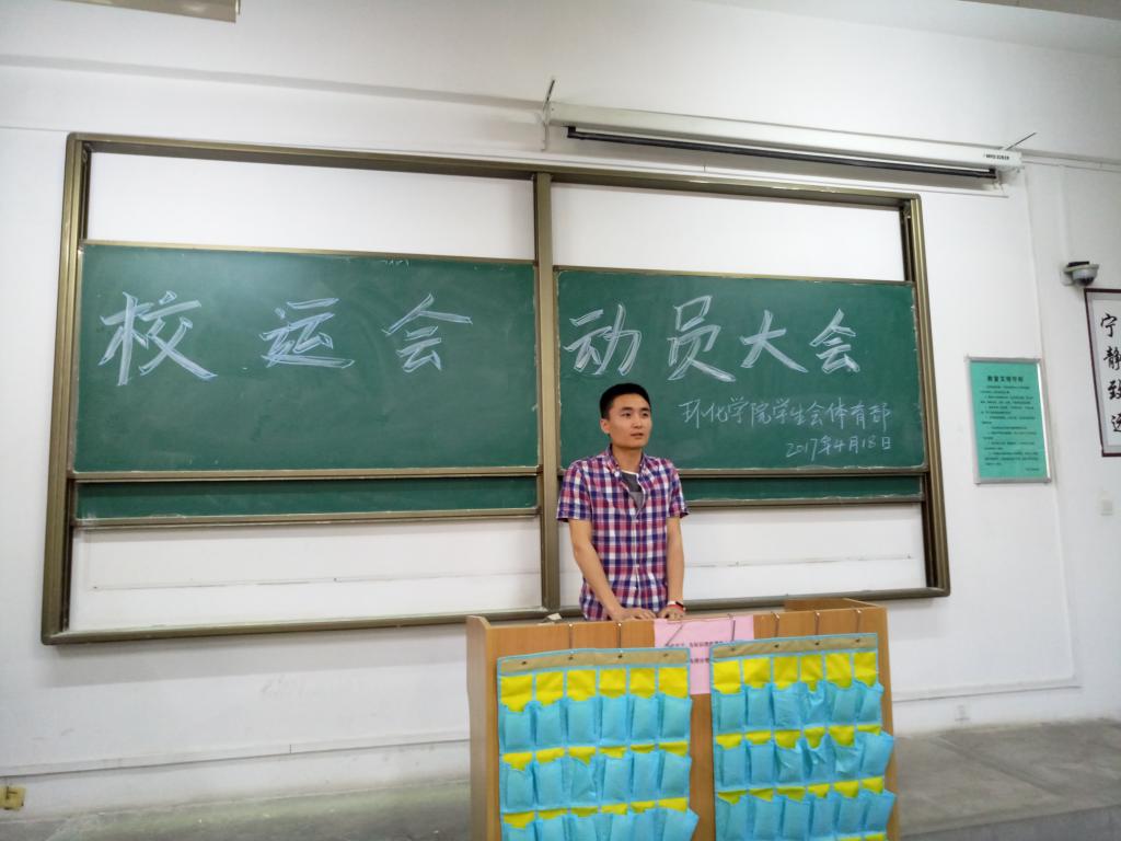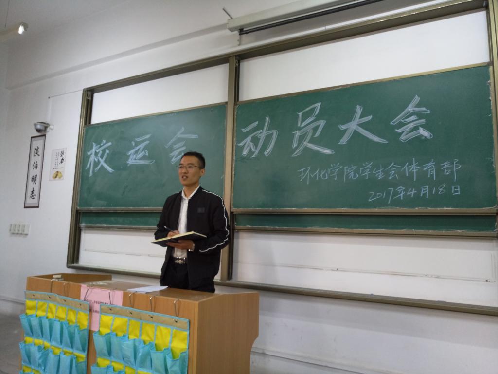 2017年4月18日18:00,环化学院校运动会动员大会在临潼校区A栋226教室举行。参加本次会议的有16级辅导员王春元、学生会主席团、学生会体育部以及参赛运动员。