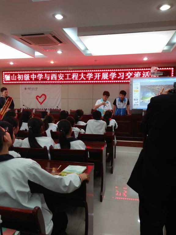 青年志愿者分队于2017年4月13日14:00带领18名大学生青年志愿者,在与骊山初级中学志愿服务项目负责人屈老师的沟通好的前提下,开展了以“趣味化学,多彩生活”为主题的志愿服务活动。为100多名初一的学生们带去有趣的化学小实验。