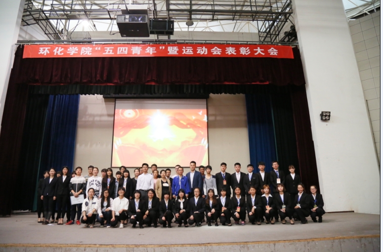五四青年暨运动员表彰大会在庄严的团歌歌声中拉开序幕。李路瑶为表彰会致辞,学习标兵代表孙田将同学、文艺标兵代表刘冰晶同学、实践标兵代表王向阳、志愿标兵代表陈涛同学、体育标兵代表张维娜通过PPT展示了个人事迹,五四红旗团支部代表化工1301班和应化1402班展示了班级活动,随后举行了颁奖仪式,为受表彰集体及个人颁发了荣誉证书,林定武为本次表彰大会做了总结讲话。
