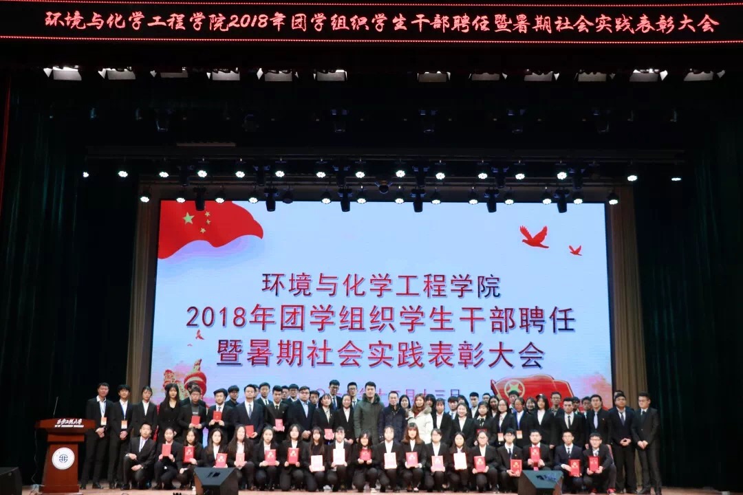 活动开始,全体合唱团歌,随后团总支书记贾天昱发表致辞,他强调要有自信热情的人生态度、树立长远的学习目标、养成良好的生活习惯。紧接着由学工办主任林定武宣读受聘决定并为受聘学生干部颁发聘书,受聘学生干部代表贾雨梦发言,他总结过去一年的工作并说明未来一年的目标和工作重点,代表全体学生干部宣誓将不忘初心、牢记使命、积极工作、努力学习、团结互助,努力创建一个和谐温馨积极的环化学院;最后,辅导员刘婧宣读关于表彰2018年暑期社会实践优秀队伍和先进个人的决定并为获奖学生颁奖,随后社会实践学生代表潘桂旭上台发言,他说明社会实践活动的意义所在并且分享自己在暑期社会实践中学到的东西,总结了2018年度环化学院的实践成果,并希望同学们也秉承环化学院超越精神,积极创建环化学院之辉煌。