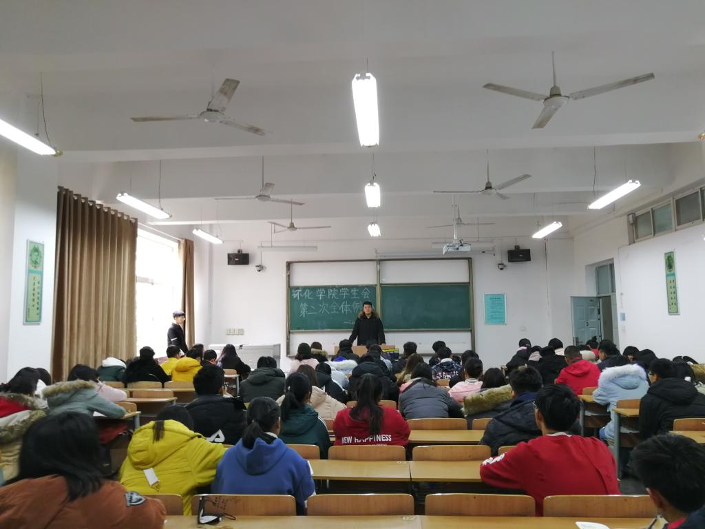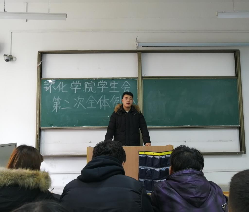 学生会第二次全体例会在临潼校区教学楼A-204顺利召开,环化学院团总支书记贾天昱和环化学院学生会全体成员参加了本次会议。