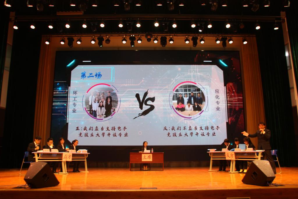 贾天昱在致辞中指出,辩论是锻炼同学们逻辑思维、展示才华的平台,希望同学们能够通过辩论赛来提高自己的思辨能力和语言表达能力,充分展示大学生的智慧与风采。比赛设开篇立论、攻辩、自由辩论、总结陈词四个环节,第一场由生物化工专业和环科专业就“学习应当面面俱到还是专攻其一”展开辩论;第二场由环工专业和应化专业就“我们是否应该支持电子竞技在大学开设专业”展开辩论。赛场气氛紧张热烈,双方辩手旁征博引,场下观众激情澎湃,掌声连连响起。其次,本次辩论赛设友谊Battle赛环节,各辩论队选一名学生组成正反两方辩论队伍对“抖音等短视频软件的兴起对我们的生活是利大于弊还是弊大于利”进行交锋,现场气氛迅速升温,精彩不断,掌声不断。随后,刘婧对本次辩论赛进行点评,她提到辩手要注意辩题的切入点、架设举例的场景选择,抓住核心关键词展开辩论。最终,应化专业摘得本次比赛的桂冠,环科、环工专业荣获二等奖,生物、化工专业荣获三等奖。白依柳、陈晓乾、杨雨珊、卞雯如、冯成成获“优秀辩手”称号。