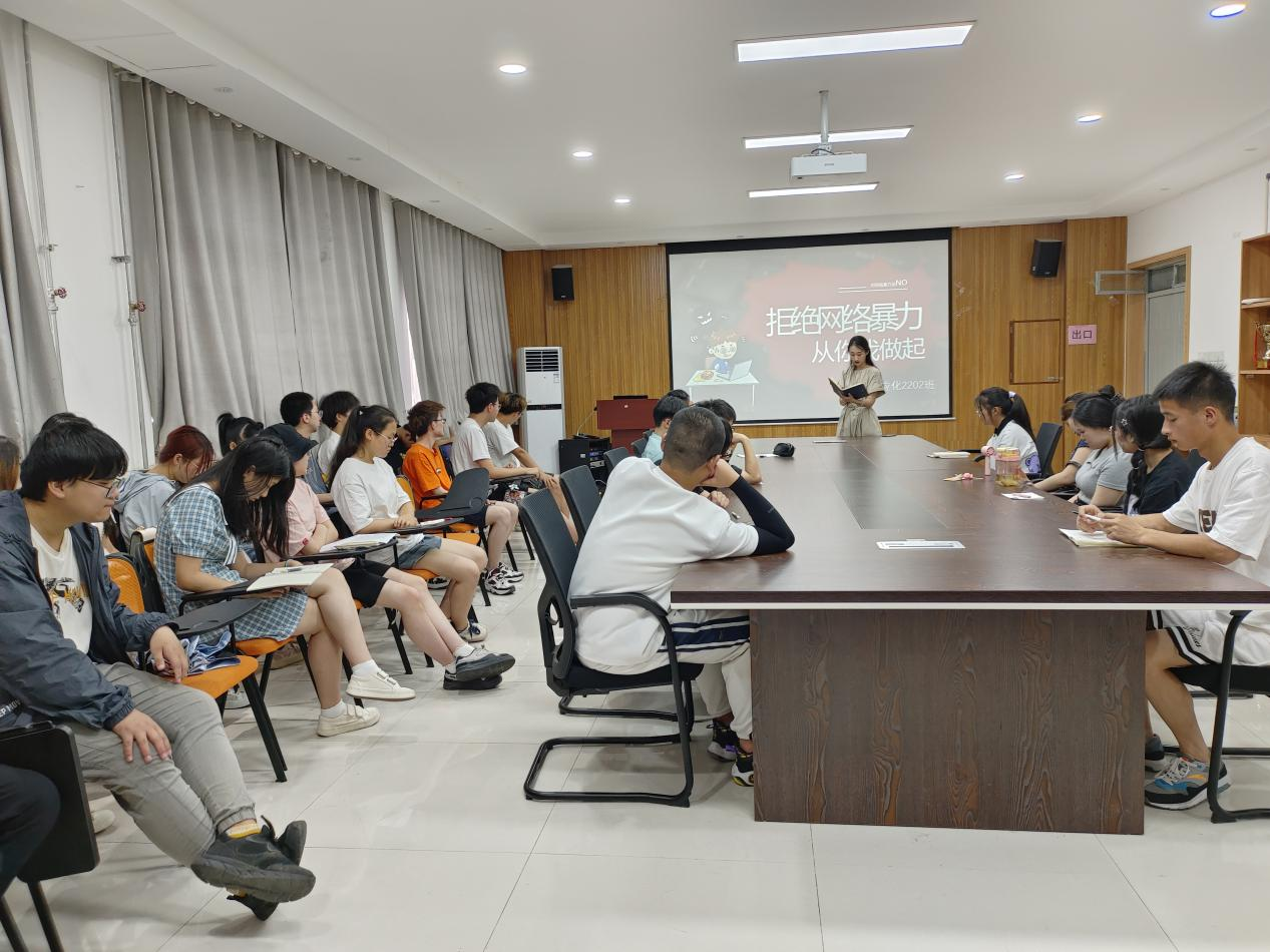 为了让同学们在这个移动互联网的社会,在“人人都有麦克风”的时代,不做网络暴力的受害者和实施者,应用化学2202班于6月16日在环化楼507会议室开展了“拒绝网暴,从你我做起”的主题班会,辅导员任子瑜和应用化学2202班全体同学参与本次班会,班会由班长宋科明主持。
