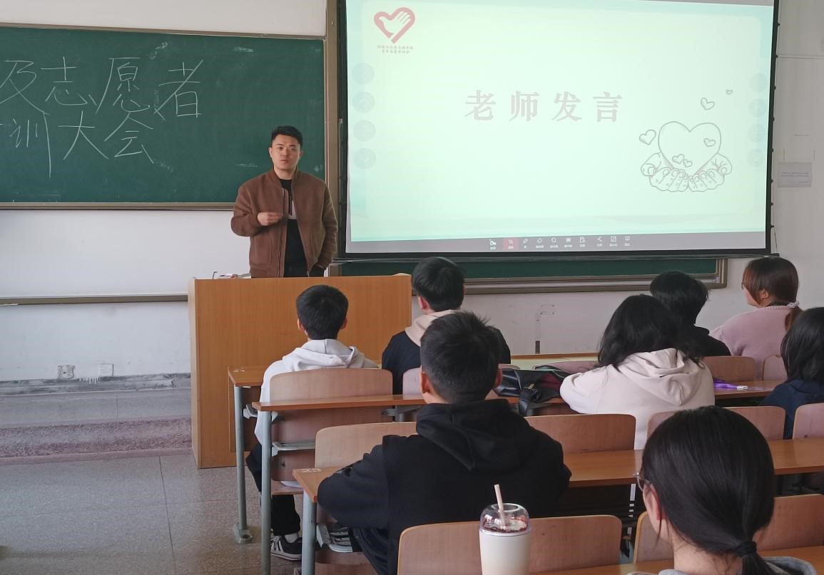 为弘扬志愿精神,进一步培养优秀青年志愿者,环化学院青年志愿者协会于3月28日在教学楼D-384开展班级志愿者培训大会,学院团总支书记贾天昱和各班新生班级志愿者参加本次大会,大会由吴柯、王梦玥主持。