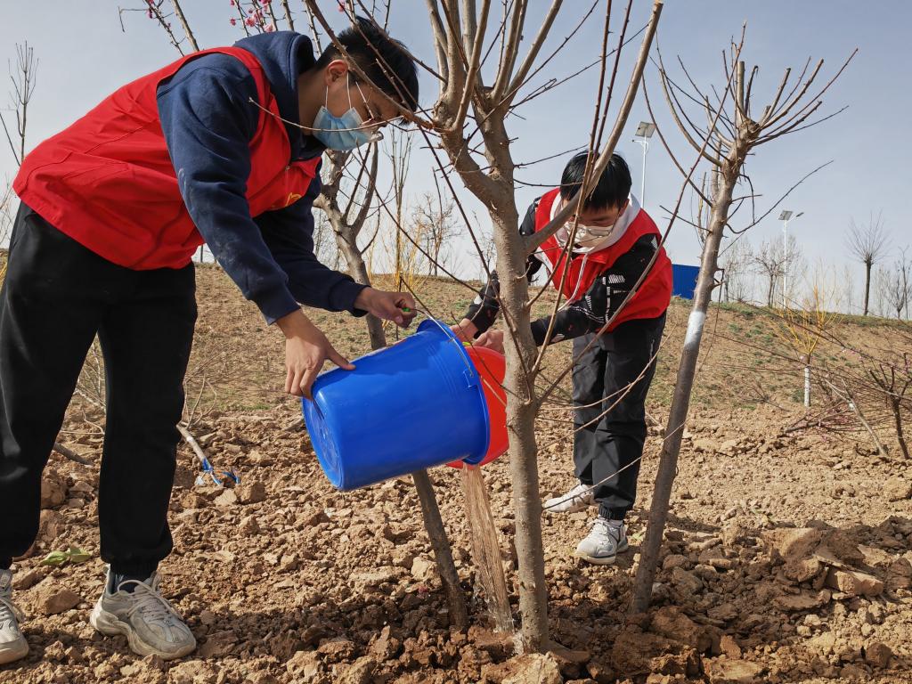 手植春光,树美大地。习近平总书记多次强调,生态文明是人民群众共同参与、共同建设、共同享有的事业,美丽中国建设离不开每一个人的努力。活动过程中,绿风环保协会在专业人员的指导下充分了解植树要领,一锹土,一桶水,浇灌的是生机和希望,一丛花,一棵树,承载的是理念和梦想,同学们种下的不只是树木,更是亲近自然、保护环境的绿色发展理念。参与活动的2021级环境工程专业丁家蓉同学表示:通过此次活动了解到植树造林不仅可以绿化和美化家园,同时还可以起到防止水土流失、扩大山林资源、调节气候、涵养水源等一系列积极作用,结合自己所学专业,更加坚定了未来从事环保事业的初心。