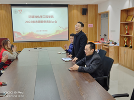 于临潼校区8-507会议室开展志愿服务表彰大会,学院党委书记胡西民、党委副书记林定武、团总支书记贾天昱及优秀青年志愿者参与此次会议。大会由贾天昱主持。
