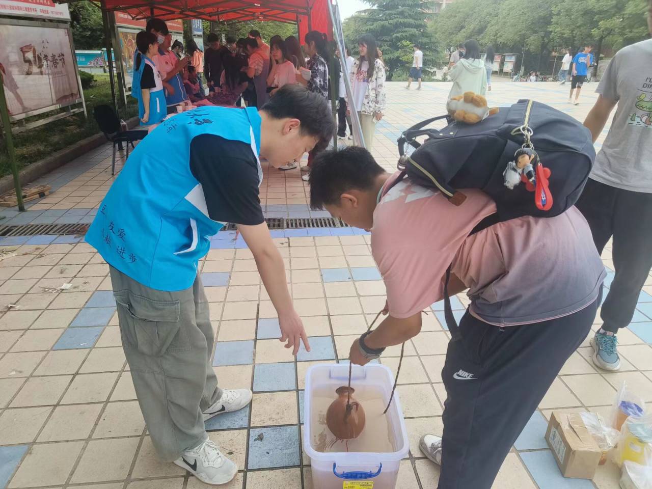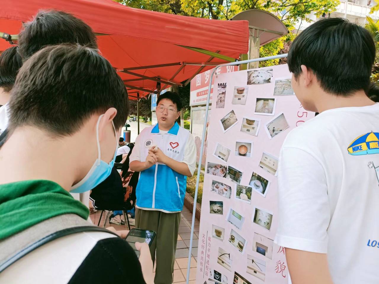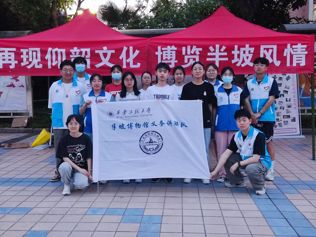 青年志愿者协会分会半坡义导队在中心广场开展了“再现仰韶文化,博览半坡风情”的主题活动。