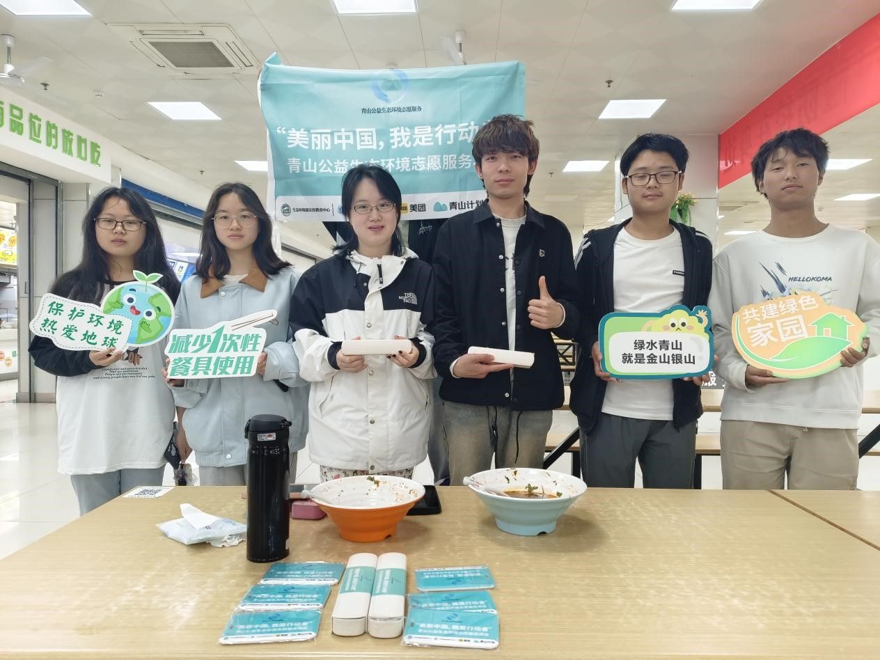 通过一系列富有创意和互动性的活动,推动环保知识的普及和环保意识增强。开展习近平生态文明思想的学习宣传,引导同学们尊重自然、顺应自然、保护自然,践行绿水青山就是金山银山的环保理念。开展《公民生态环境行为规范十条环保行为规范》宣传,倡导关爱生态环境、节约能源资源、绿色消费、低碳出行、垃圾分类等环保行为,提升同学们环保意识。在校食堂开展“光盘荣耀,节食璀璨”打卡的活动,引导同学们把光盘行动作为一种时尚,从自身做起,做制止餐饮浪费的“先行者”;就餐点时“小份菜”、“小份饭”,做制止餐饮浪费的“践行者”;合理膳食,不攀比、不炫耀,做制止餐饮浪费的“宣传者”;坚决制止浪费粮食行为,做制止餐饮浪费的“监督者”。活动得到同学们积极的相应,身体力行从从身边小事做起,践行绿色低碳生活,有效的将“美丽中国”理念播种在了青年学子心中,共同呵护生态环境努力让美丽中国“美”无止境。