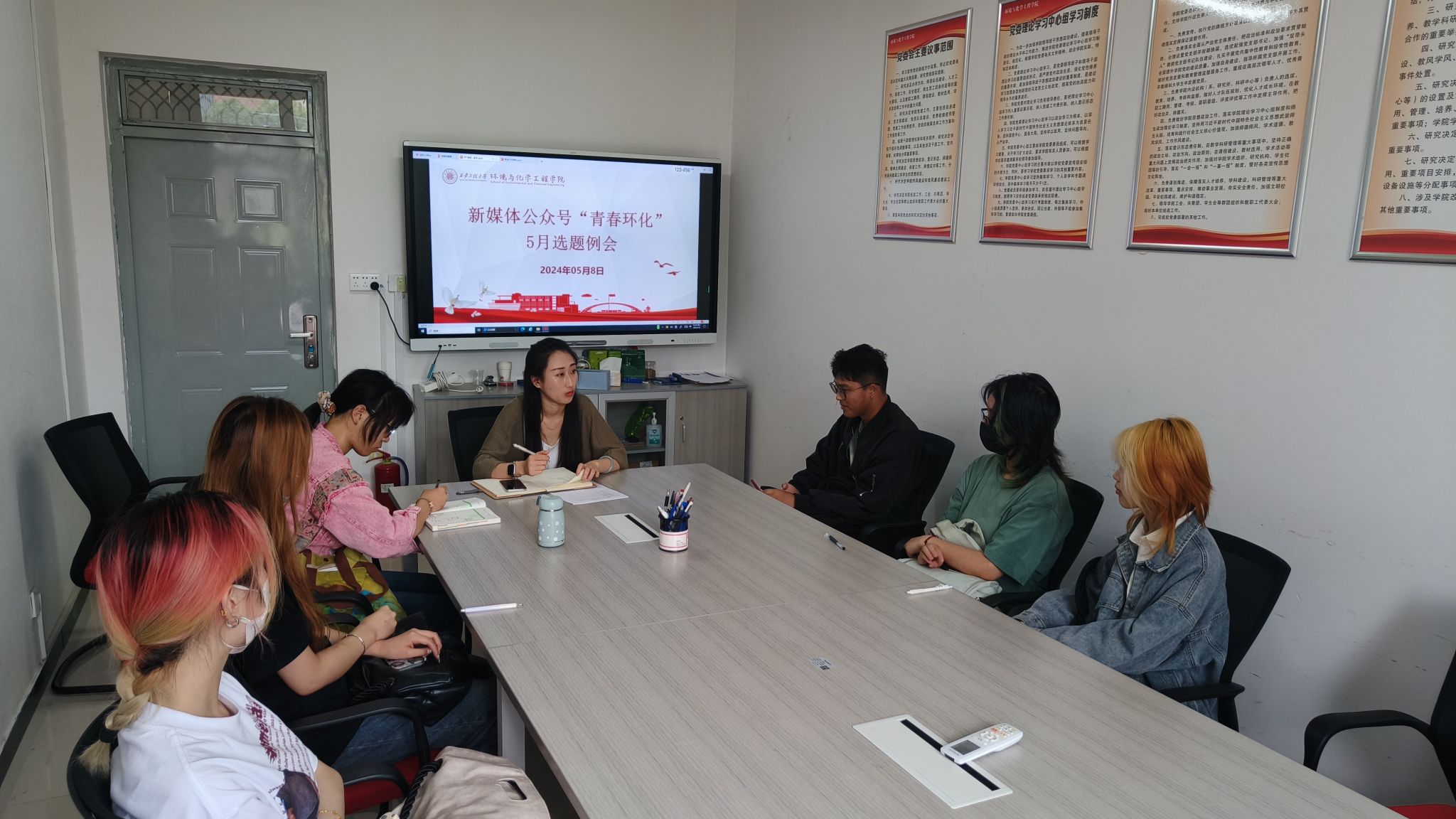 新媒体中心在学院238会议室召开了五月工作例会。会议由辅导员任子瑜主持,新媒体中心微信运营部门全体成员参加此次会议。