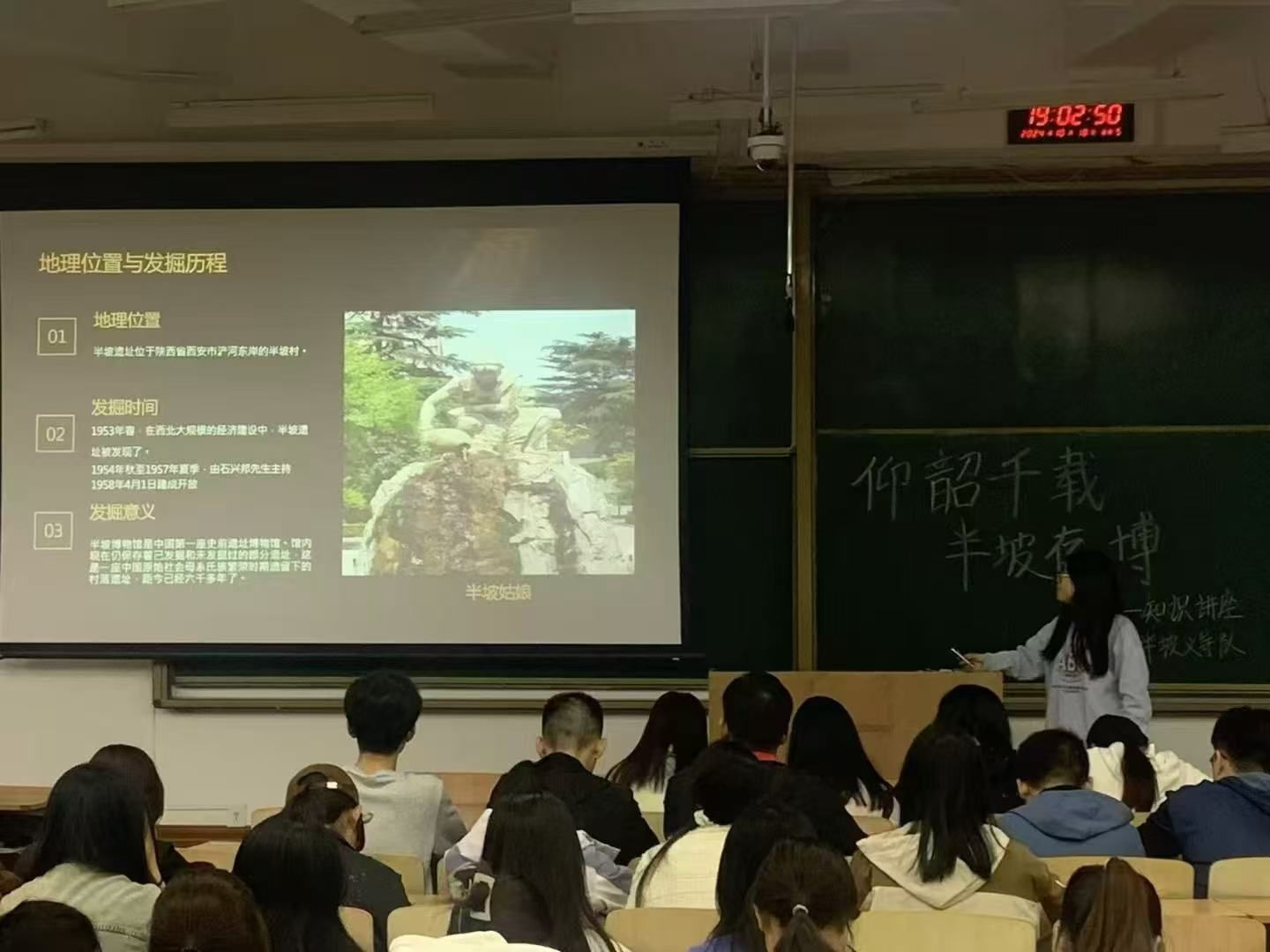 青年志愿者协会半坡义导队举办了“仰韶千载,半坡存博”知识讲座活动,学院200名同学参与本次活动。