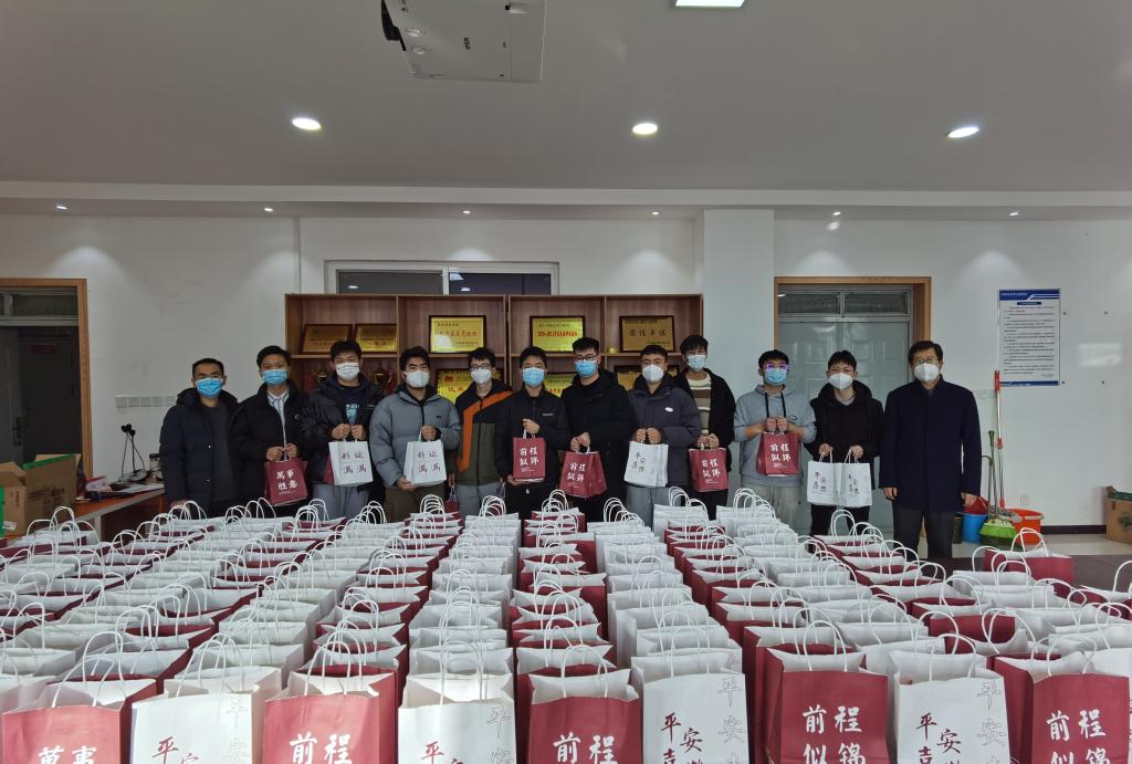 于2022年12月12日在环化楼507会议室举行2023届考研学子福袋发放仪式,学院副院长武占省、党委副书记林定武、团总支书记贾天昱及2019级考研学生代表们参与此次活动。