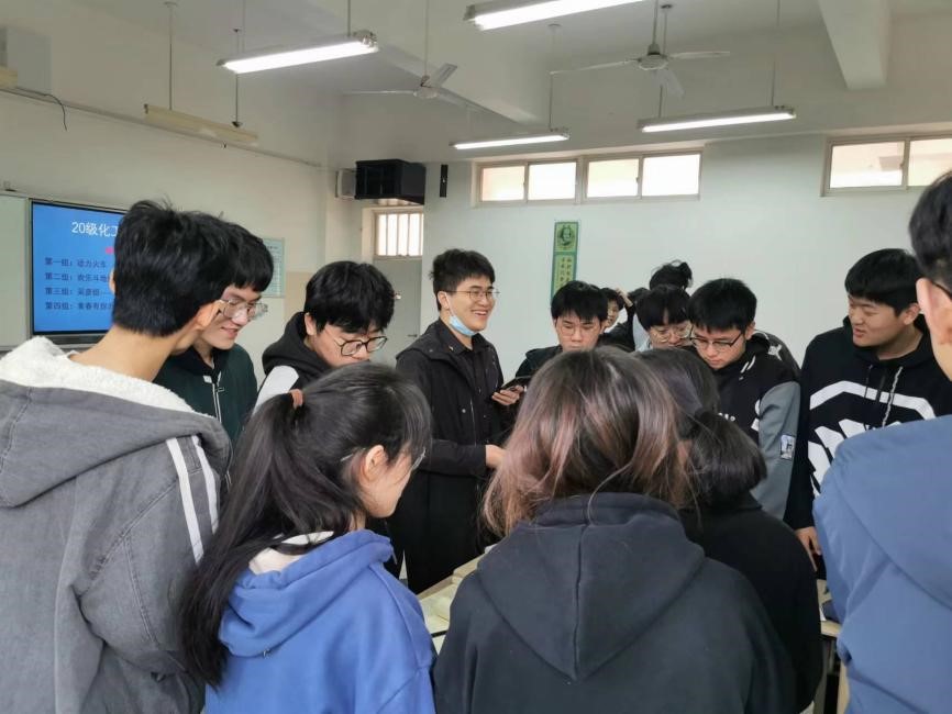 此次课堂教学活动,围绕“精馏塔”这一节教学内容,共有“吴彦组”、“欢乐斗地组”、“动力火车”、“青春有你出道组”四个团队参与,各组介绍化工行业中不同精馏塔设计、工艺流程、自动化控制和节能降耗技术的工业实例,学生们精神饱满、积极主动、持经叩问地参与到激烈讨论中。经过在组内组间讨论、各组讲授分析等环节比拼,同学们以线上投票形式选出自己最喜欢的团队。其中,“吴彦组”团队的“甲醇精馏”争得“上游”,获得此次教学活动的第一名。