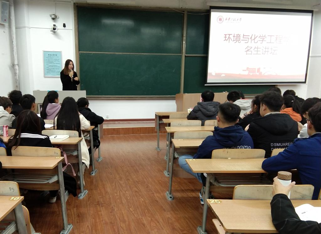 于临潼校区B137开展环化学院“名生讲坛”活动。活动由学院弘毅励志社承办,2019级辅导员刘梦雅、优秀学生代表及2019级全体同学参加本次活动。