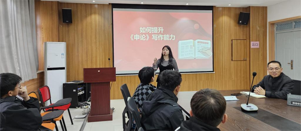 随后她以《如何提升《申论》写作能力》为主题,并结合自己的经历展开阐述,分别从审题、寻找核心词、确立分论点、支撑论点素材、文章结构等方面讲解了如何写好大作文,从“审题”、“找点”、“加工”三个方面介绍了如何做好归纳概括题型的解答,她强调,同学们要及早谋划,强化训练,不断提升应考能力。分享会期间,同学们围绕近期复习的困惑与校友进行充分的交流,受益良多。