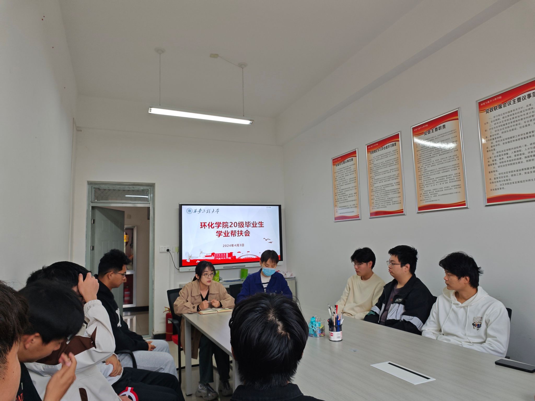 238会议室召开了20级毕业生学业帮扶谈会。辅导员张易泽、教务员耿倩及20级部分学业困难学生参加了座谈会。